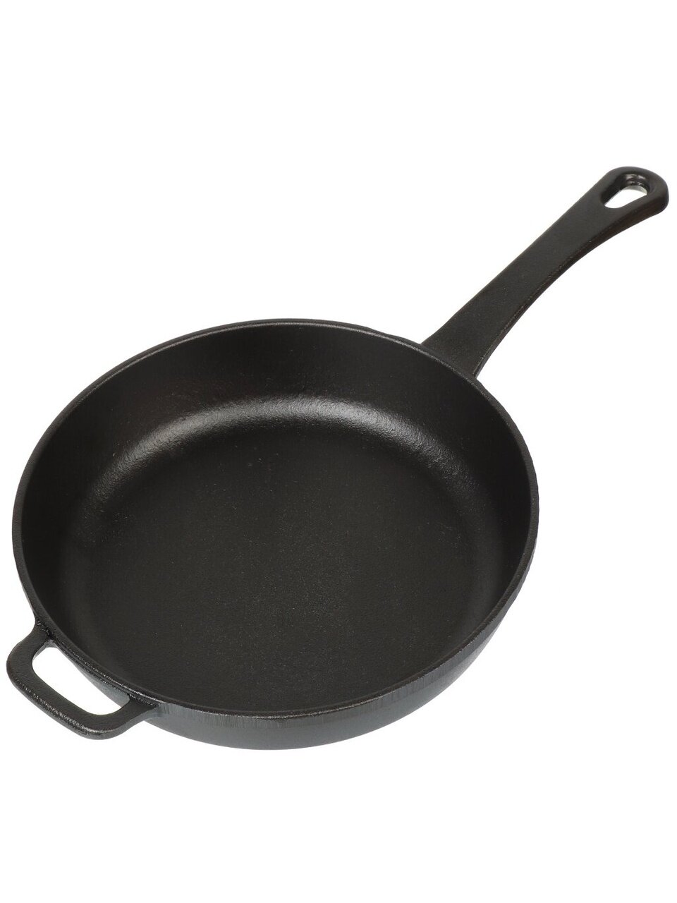 - Надёжность литой конструкции — цельная ручка и ушко для подвешивания увеличивают срок службы и удобство хранения