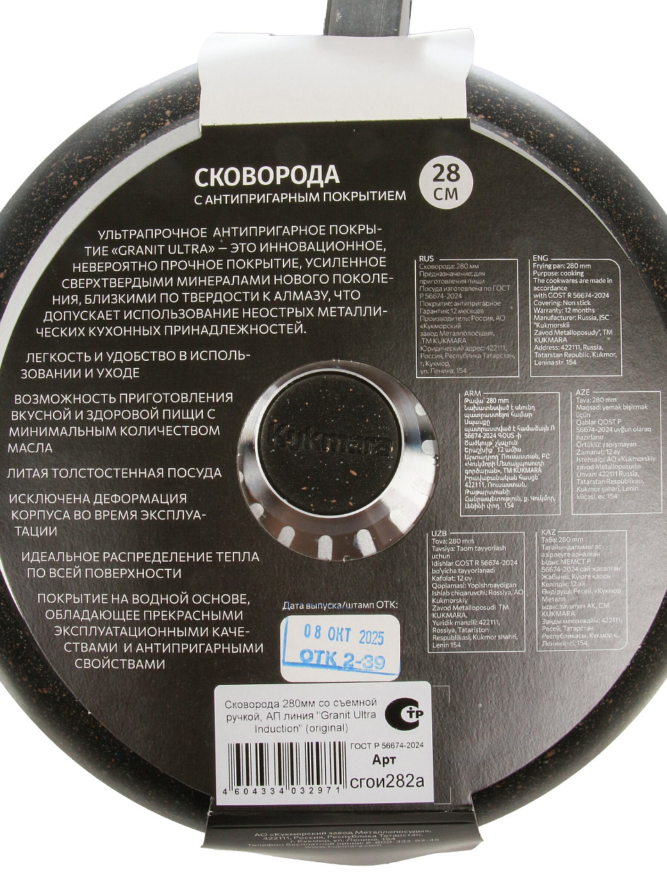 Вы можете приобрести «Сковорода алюминий, 28 см, антипригарное покрытие, Kukmara, Granit Ultra Induction original, съемная ручка, индукция, сгои282а» и другие товары в нашем интернет-магазине в Обнинске по низким ценам и с бесплатным самовывозом.