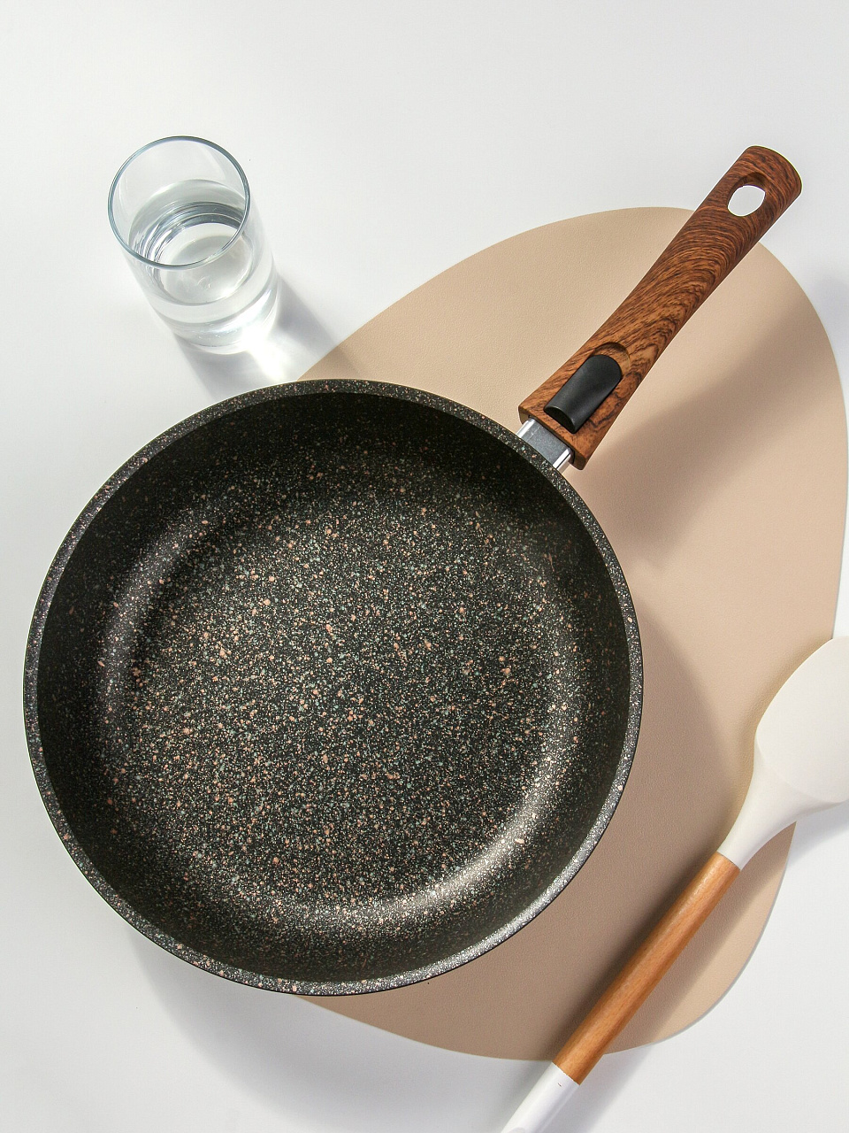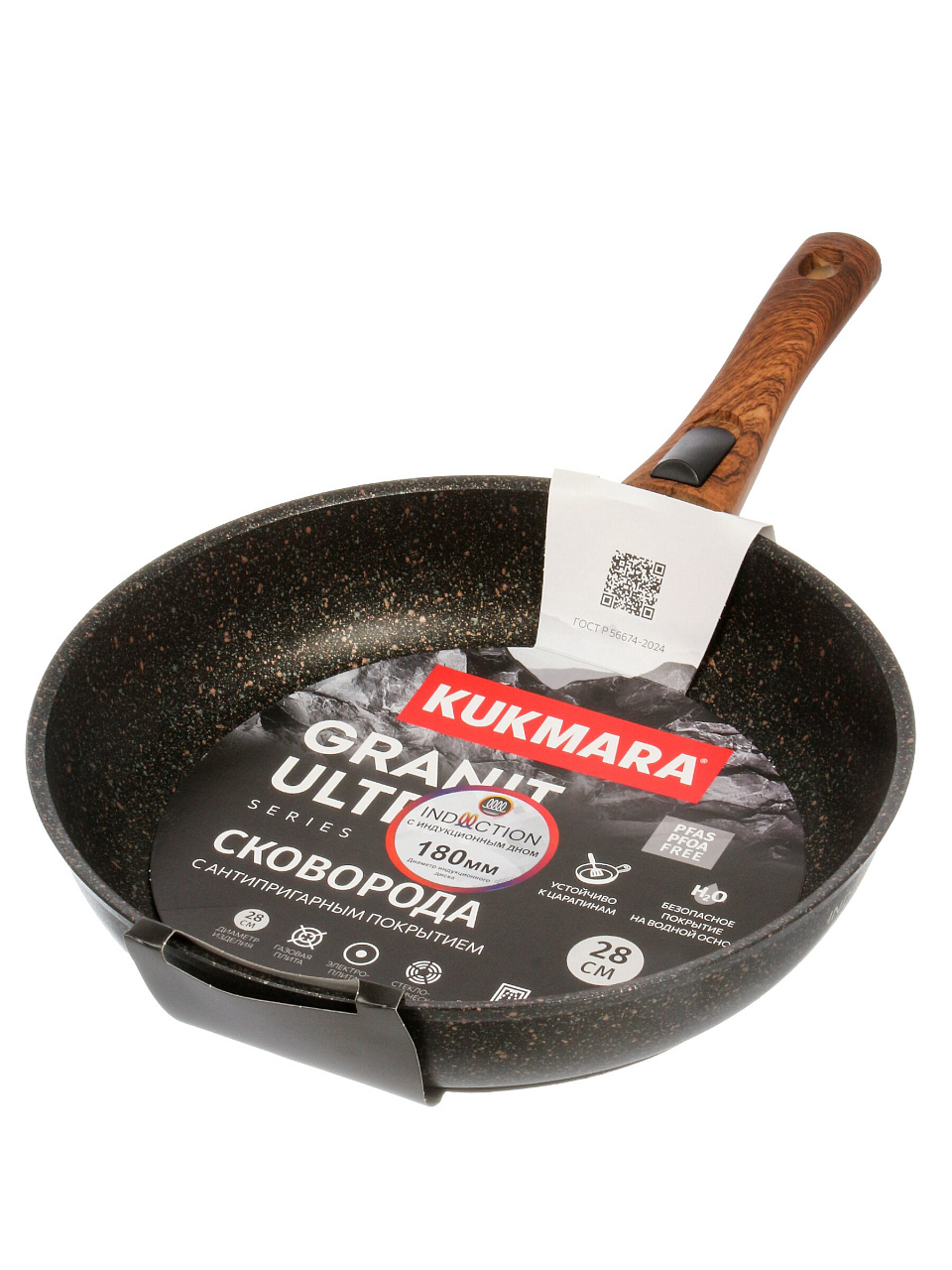 Сковорода 28 см Kukmara Granit Ultra Induction: антипригарное покрытие, съемная ручка, универсальна для всех плит. Готовьте легко и без лишнего масла!