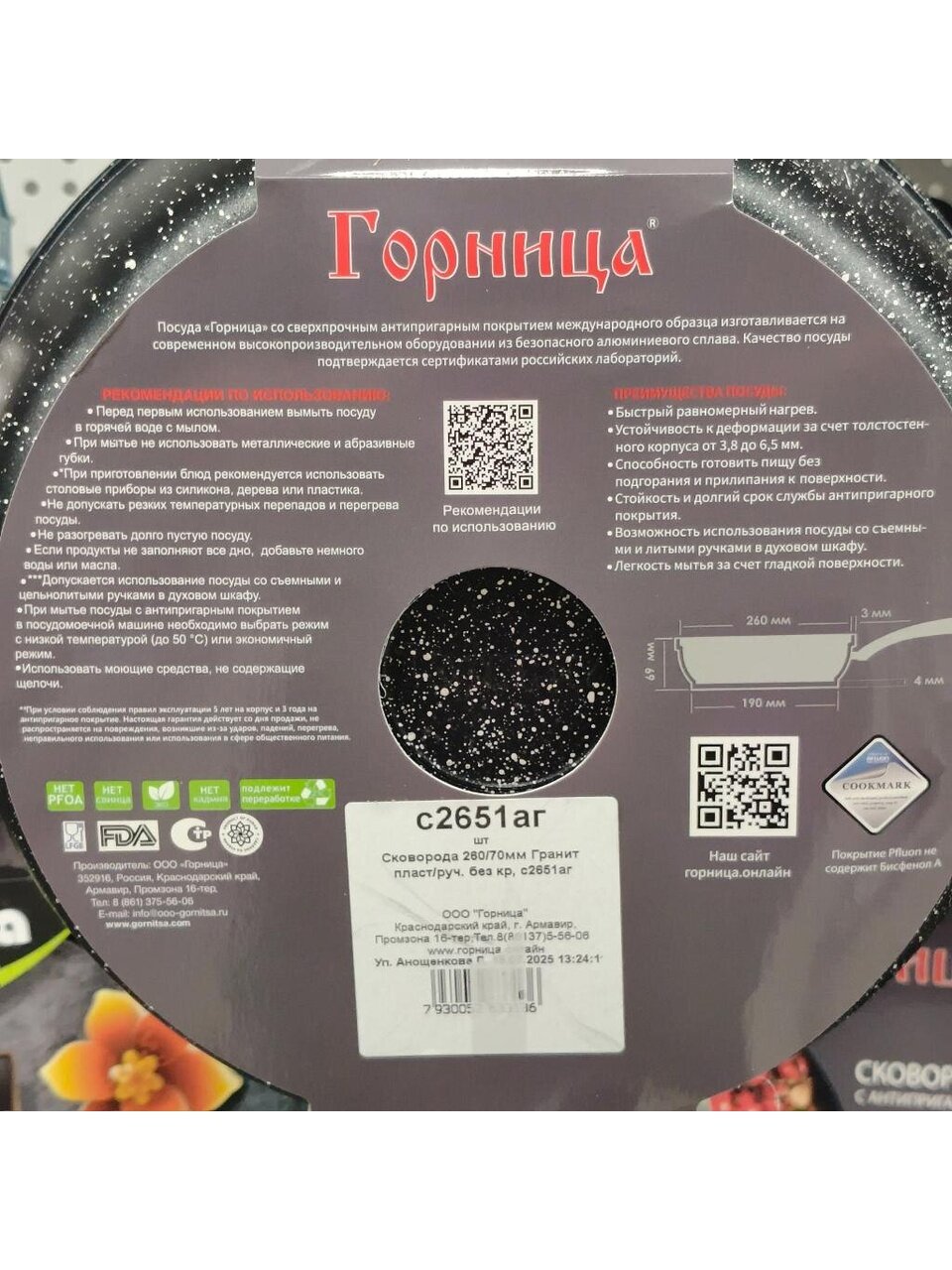 Закажите сковороду Горница Гранит 26 см сейчас — получите оригинальный товар с гарантией 5 лет, быструю доставку и возможность купить недорого сковороду для дачи или дома. Почувствуйте разницу в удобстве и вкусе уже с первой готовки!