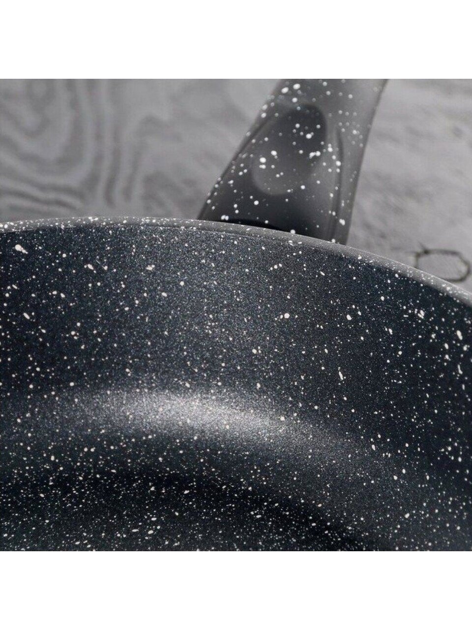 Сковорода Горница Гранит диаметром 26 см — это универсальный выбор для ежедневной готовки. Мраморное антипригарное покрытие позволяет жарить мясо, рыбу, яйца и оладьи с минимальным количеством масла, что важно для здорового питания. Литой алюминий обеспечивает быстрый и равномерный прогрев по всей поверхности, а толстое дно (6 мм) надежно защищает от деформации и способствует долгому сроку службы. Если вы ищете, какую сковороду выбрать для дачи или дома, обратите внимание на сочетание прочности и легкости ухода: изделие можно мыть в посудомоечной машине, оно не боится частого использования.