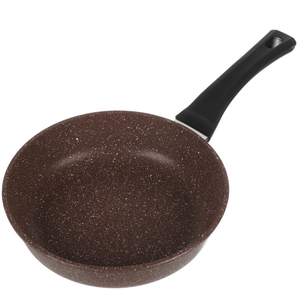 Сковорода Горница Шоколад 24 см — литой алюминий, мраморное антипригарное покрытие, 5 лет гарантии. Легко готовить без пригорания и мыть в посудомойке.
