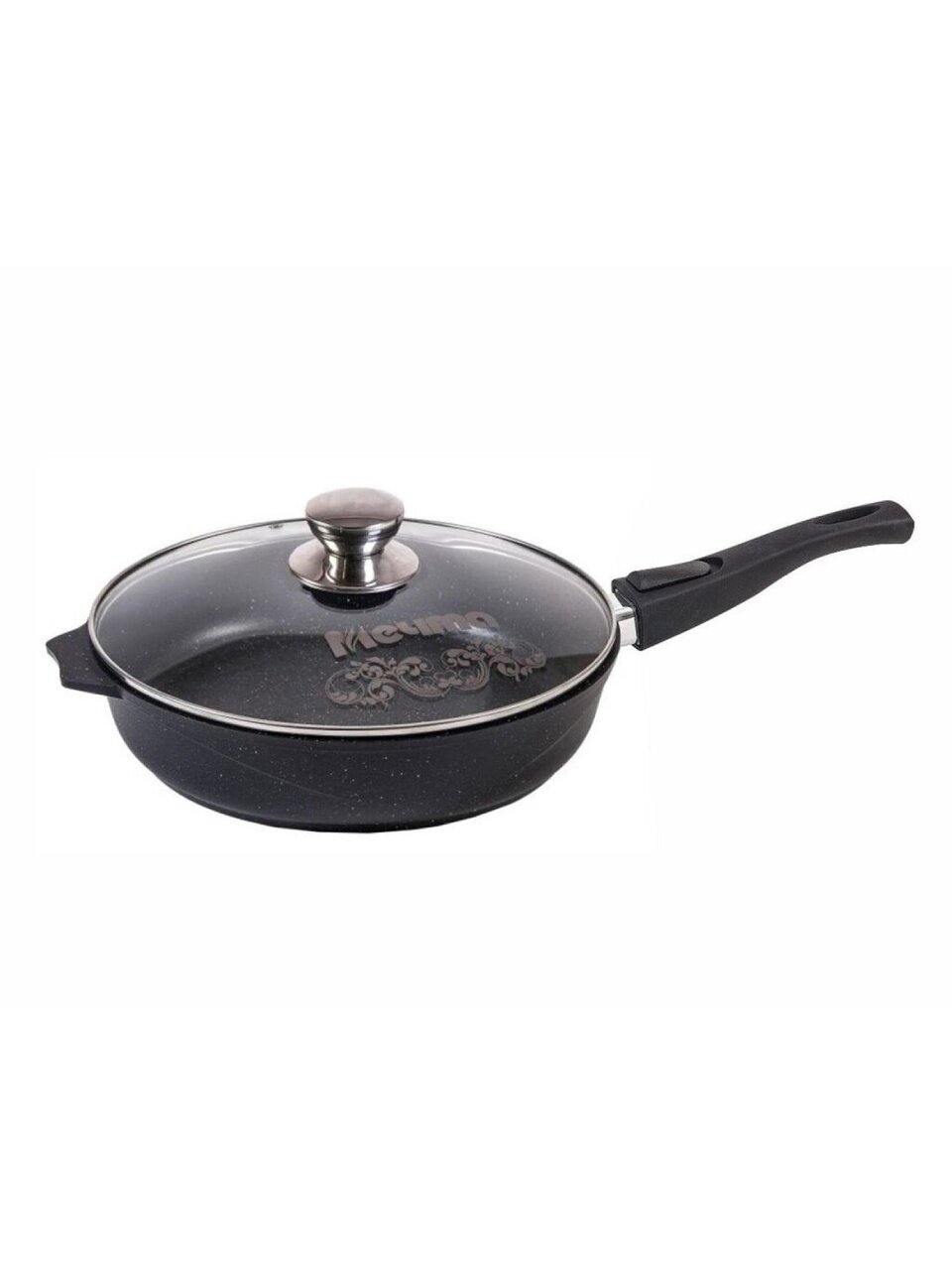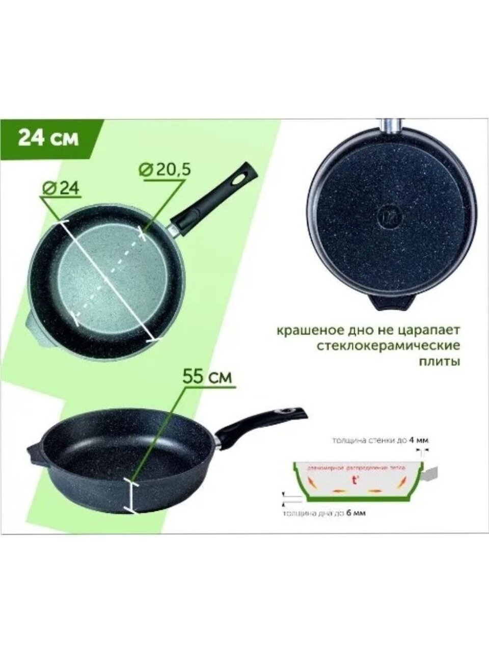 Сковорода из литого алюминия 24 см «Мечта Гранит» с антипригарным покрытием, крышкой и съемной ручкой — идеальный выбор для дома и дачи: жарьте без масла, готовьте быстро, мойте в посудомойке.