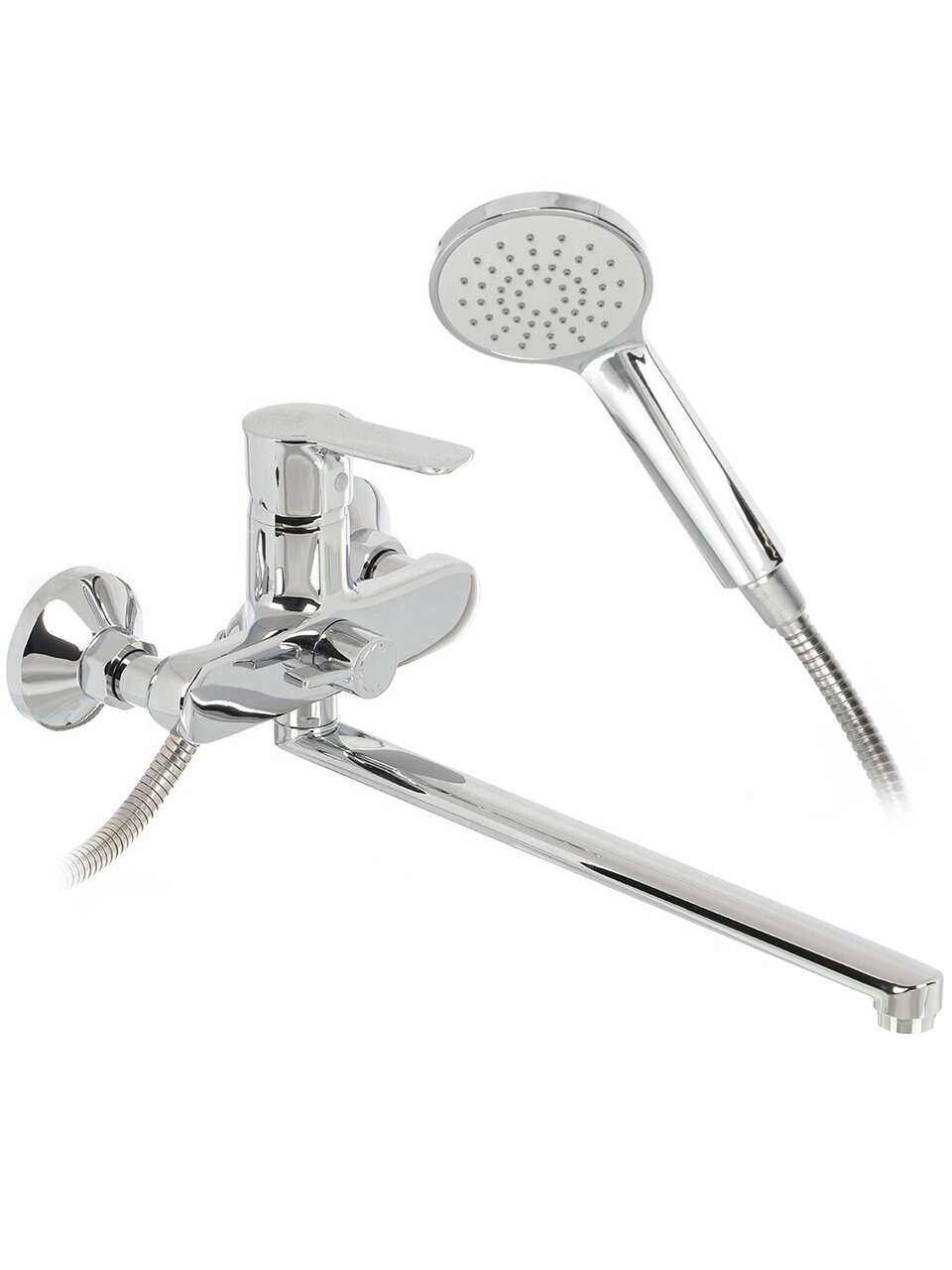 Смеситель для ванны Potato P2233N: долговечный хром, поворотный излив 39,9 см, идеален для душа и наполнения ванны — монтаж за 5 минут.