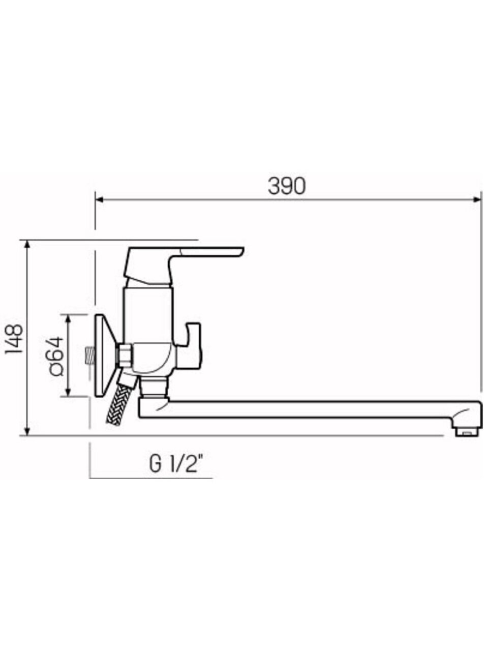 Межосевое расстояние 150 мм, монтаж вертикальный настенный, крепление — гайка, требуется 2 отверстия для установки.