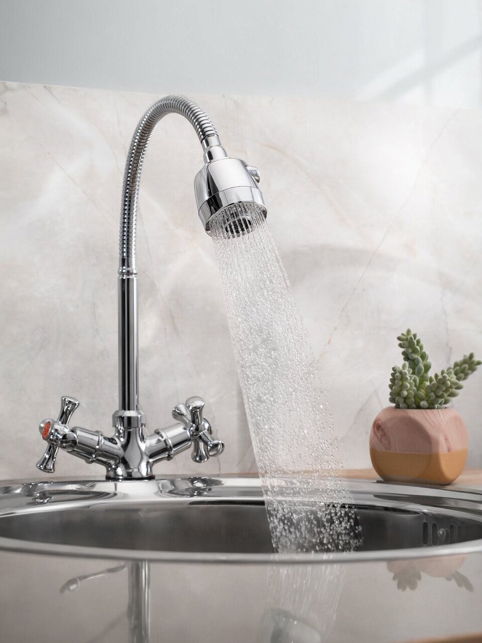 Многие покупатели спрашивают, чем отличается гибкий излив от стандартного и как выбрать смеситель для кухни с учетом размеров мойки. Гибкий излив РМС дает больше свободы движений и подходит для раковин разных форм и глубины. В отличие от моделей с коротким изливом, этот вариант удобен для установки даже в небольших кухнях, но при этом обеспечивает широкий радиус действия.