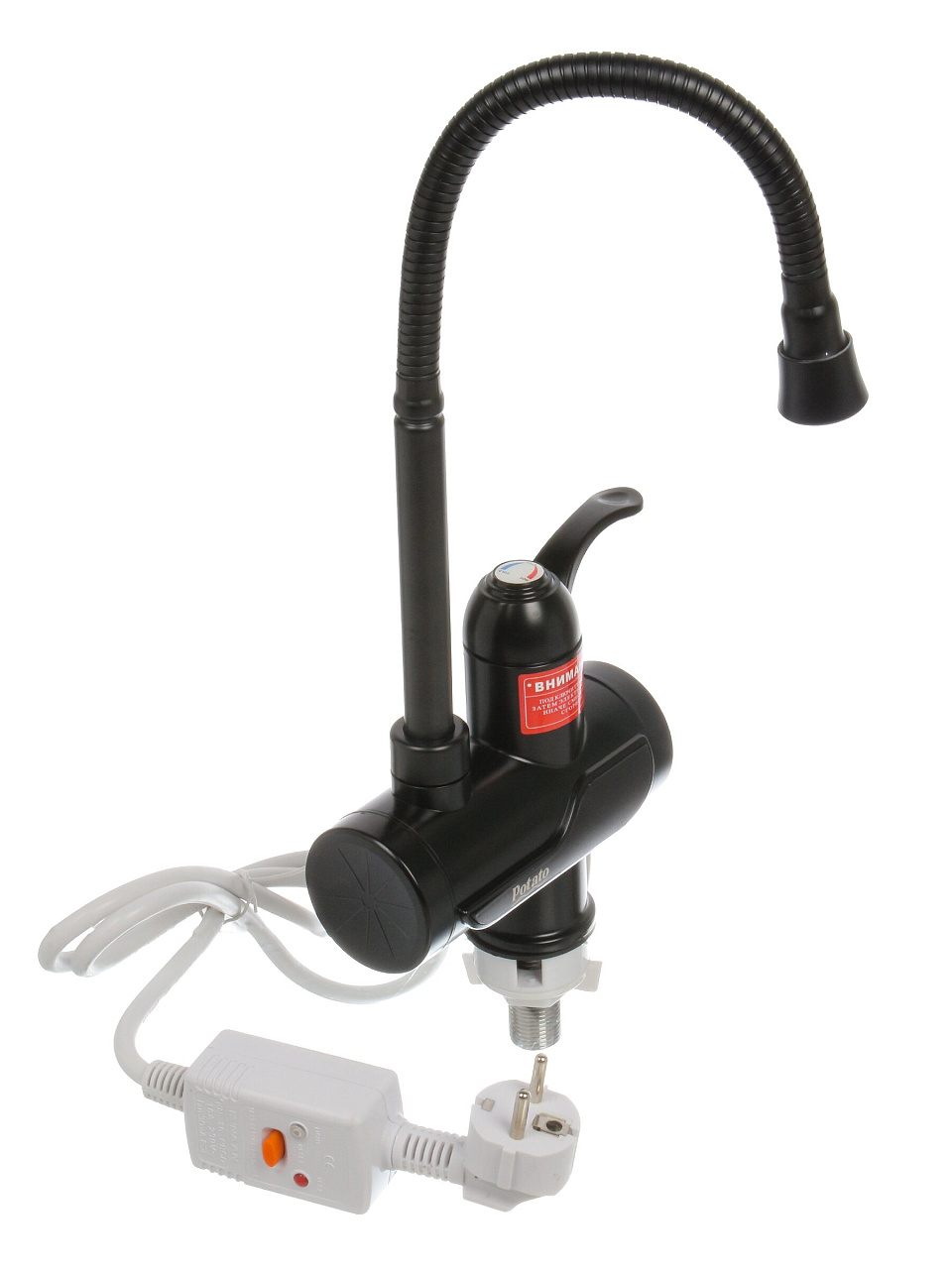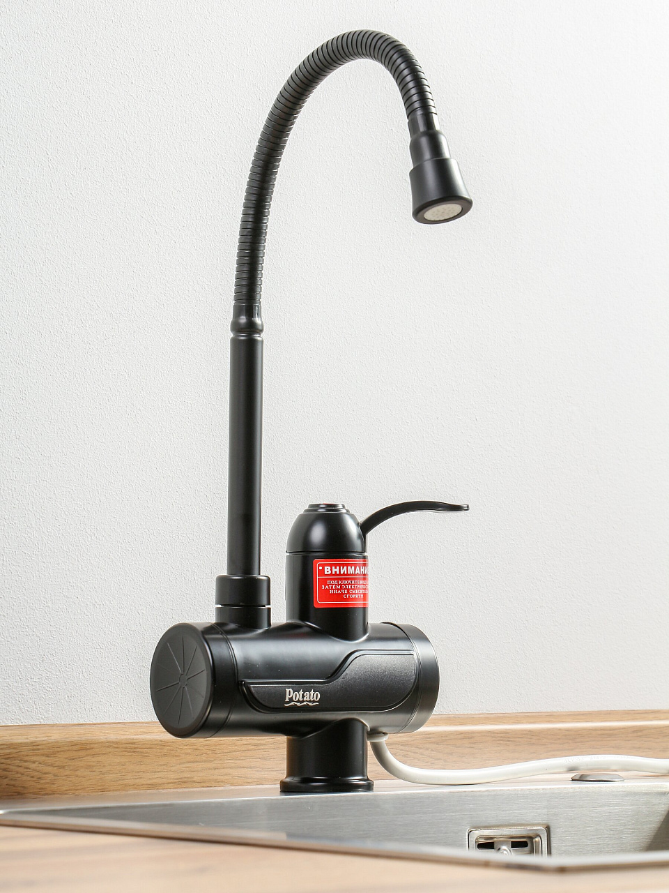 Смеситель Potato P0060-7 с гибким изливом и проточным водонагревателем — экономьте воду и получайте горячую за секунды. Удобство для кухни, дачи и ванной.