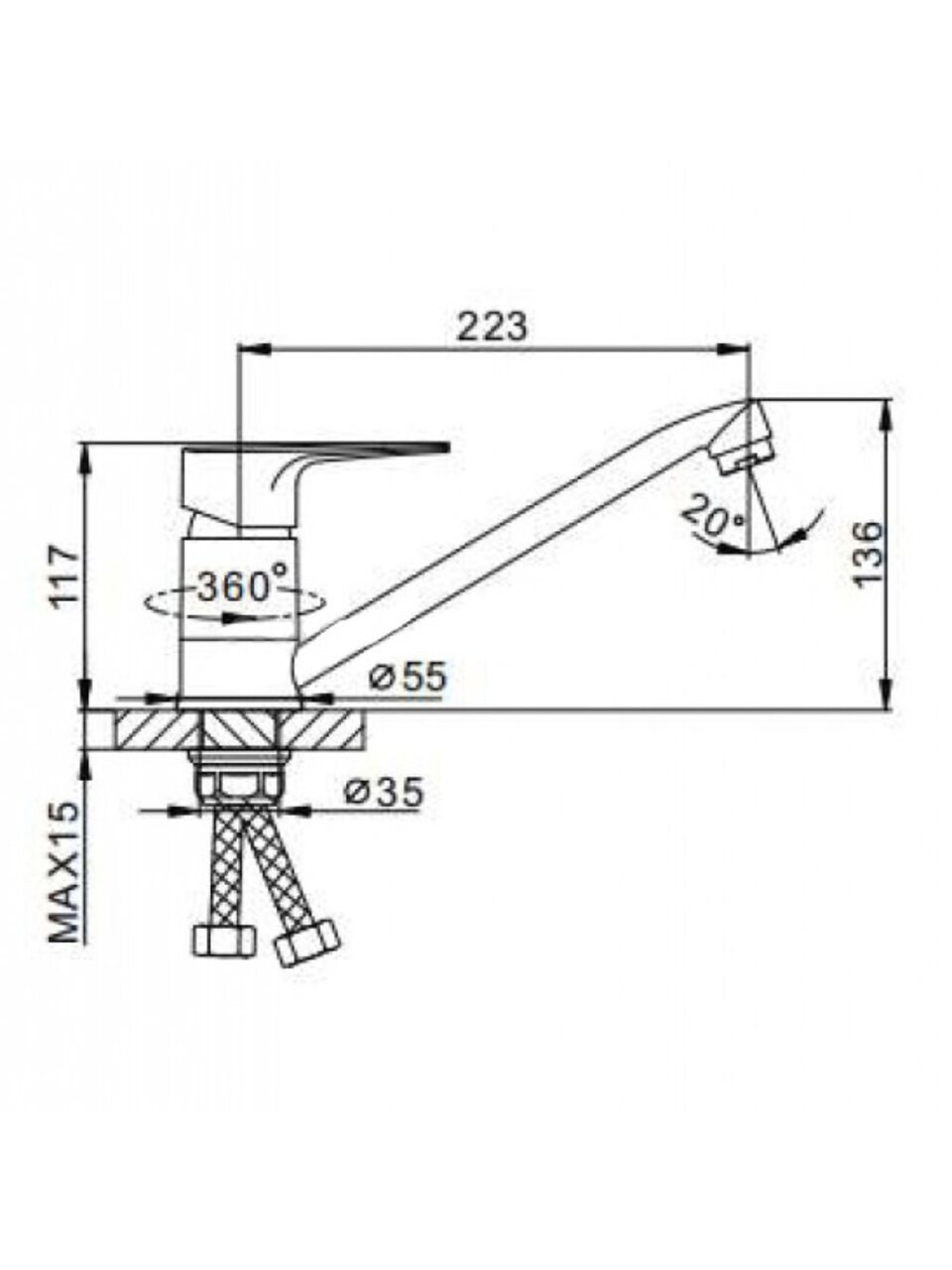 - Гибкая подводка и поворотный средний излив — удобно для кухни, дачи или в подарок на новоселье