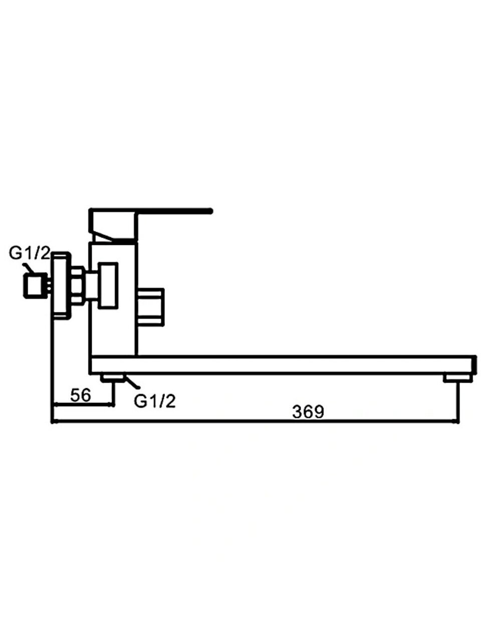 Межосевое расстояние — 150 мм, длина излива — 35 см, монтаж — вертикальный настенный на 2 отверстия, стандарт подключения шланга — 1/2".