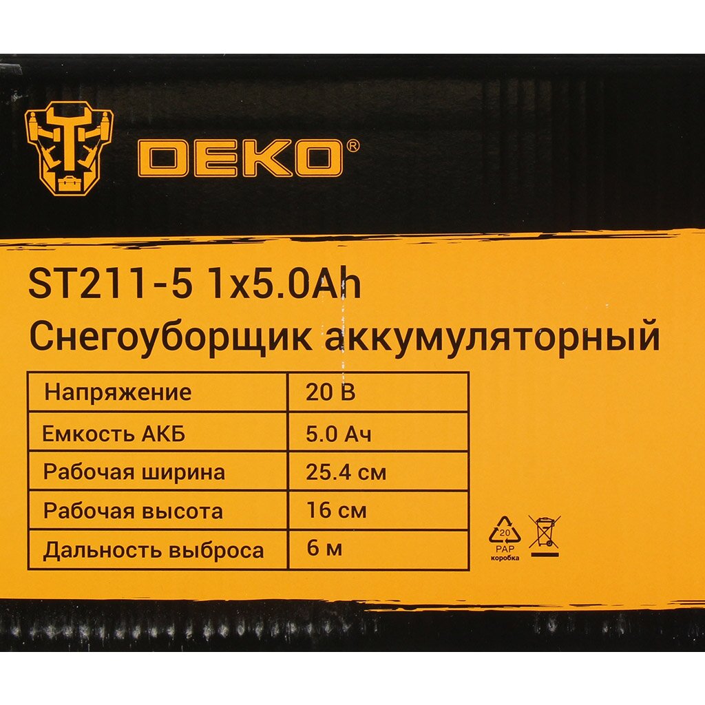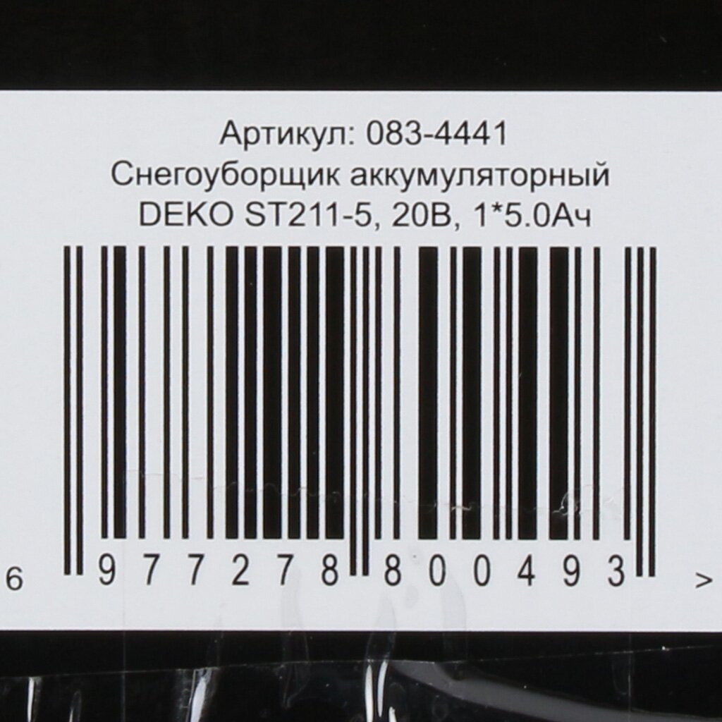 Вы можете приобрести «Снегоуборщик электрический, Deko, ST211-5, 25.4х16 см, скорость 1 вперед, 20 В, аккумуляторный, 1х5.0 Ач» и другие товары в нашем интернет-магазине в Ельце по низким ценам и с бесплатным самовывозом.
