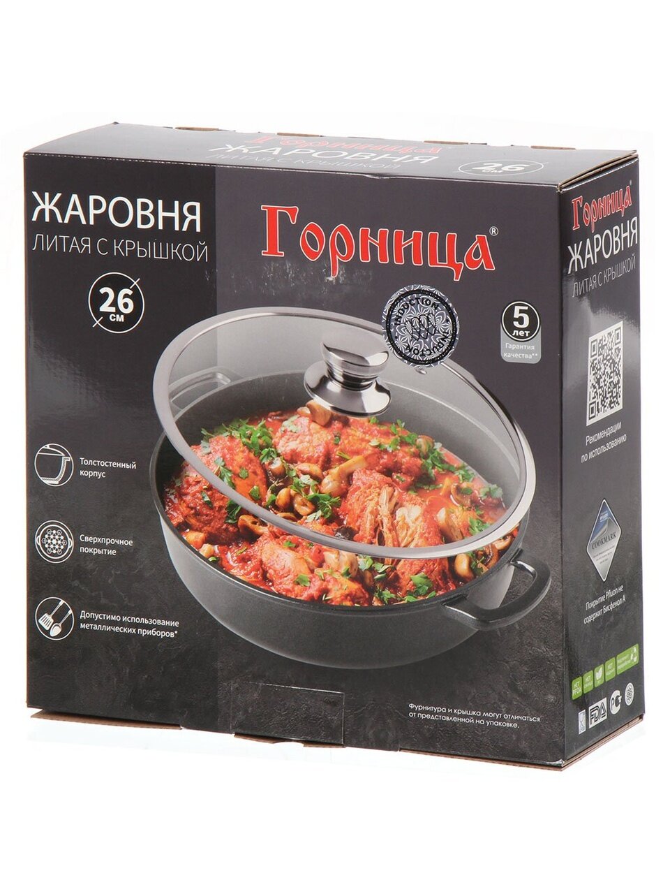 Вы можете приобрести «Жаровня алюминий, 26 см, 3 л, антипригарное покрытие, Горница, Induction Гранит, Иж2611аг, с крышкой, индукция» и другие товары в нашем интернет-магазине в Ельце по низким ценам и с бесплатным самовывозом.