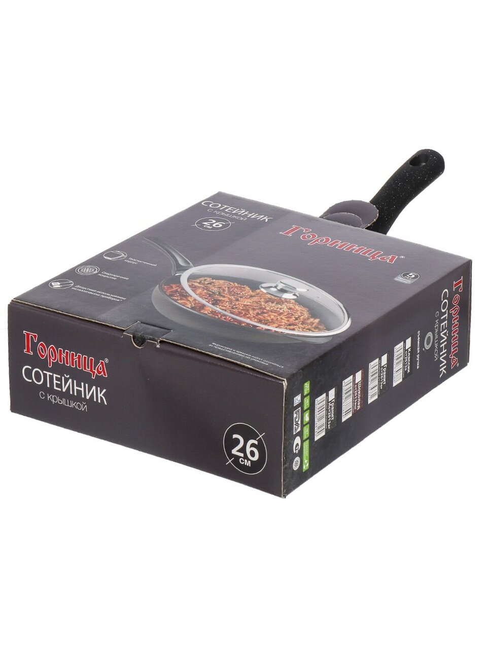 Толстое дно сотейника Горница Гранит способствует равномерному распределению тепла по всей поверхности. Блюда в нём получаются вкусными, сочными и ароматными. А антипригарное покрытие не позволяет пище прилипнуть или подгореть, сохраняя тем самым аппетитный внешний вид.