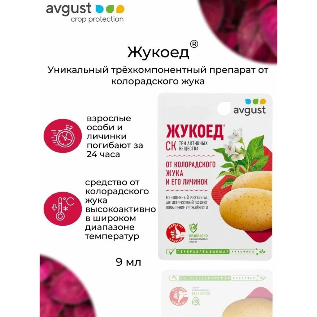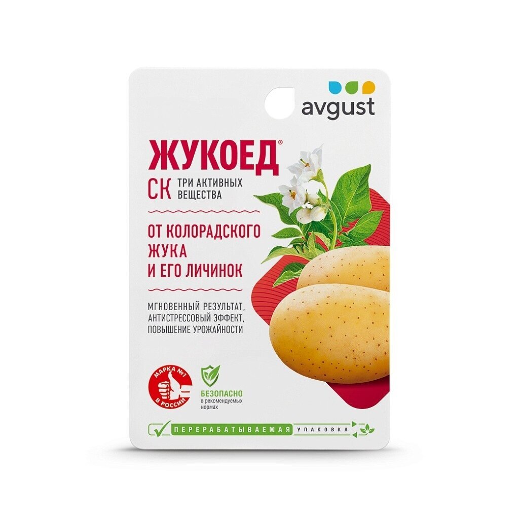 Новое решение в борьбе с колорадским жуком! Жукоед — инновационный препарат от колорадского жука на картофеле, в состав которого входят три активных действующих вещества, принадлежащие к разным классам химических соединений, отличающихся по механизму действия и физическим свойствам: