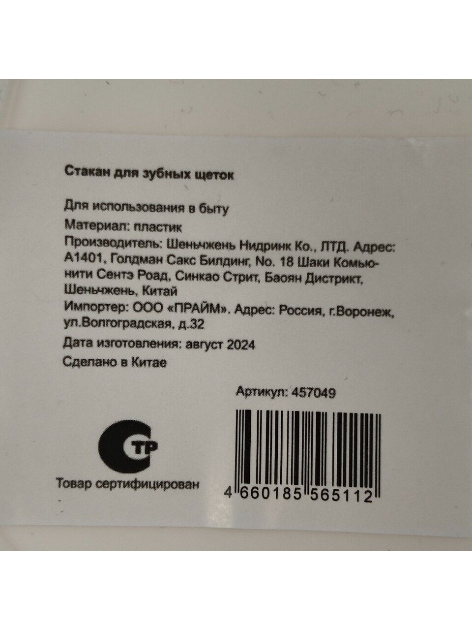 - Назначение: для зубных щеток.