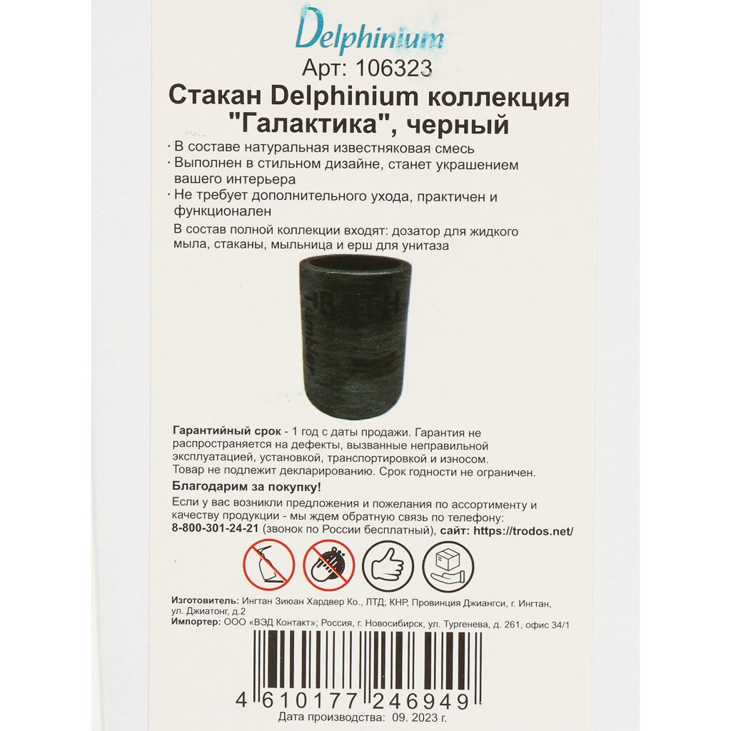 Вы можете приобрести «Стакан 12.5х8.5х8.5 см, черный, Delphinium, Галактика, 106323» и другие товары в нашем интернет-магазине в Таганроге по низким ценам и с бесплатным самовывозом.