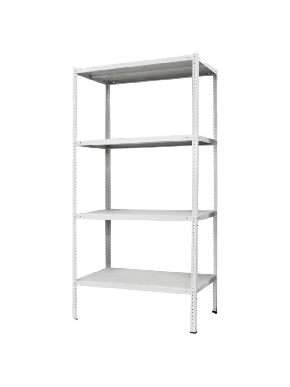 Металлический стеллаж МС-244/500 выполнен из стальных материалов высокого качества. Поверхность конструктивных элементов стеллажа покрыта порошковой краской светло-серого цвета. Конструкция стоек Металлического стеллажа МС-244/500 допускает монтаж полок на произвольном уровне. Технологические отверстия для крепления полок стеллажа расположены с шагом 25 mm. Стеллаж комплектуется полками, выдерживающими нагрузки до 100 кг на каждую полку. Максимальная нагрузка на весь стеллаж составляет 500 кг. Стеллаж поставляется в разобранном виде и укомплектован 4-мя металлическими стойками, 4-мя металлическими полками и необходимым крепежом для сборки.