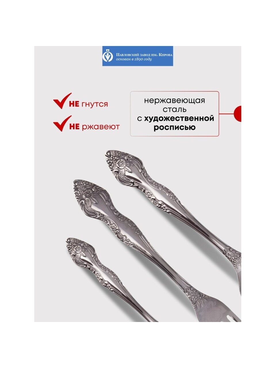Набор столовых приборов "Тройка М-3" от Павловского завода им. Кирова — это гармония традиций и современных технологий. Благодаря художественной росписи каждый предмет становится не только функциональным, но и эстетически привлекательным. Если вы ищете, какой столовый набор лучше выбрать для ежедневного использования или праздничного стола, обратите внимание на сочетание прочной нержавеющей стали и авторского декора — такой комплект прослужит годами и не потеряет внешний вид.