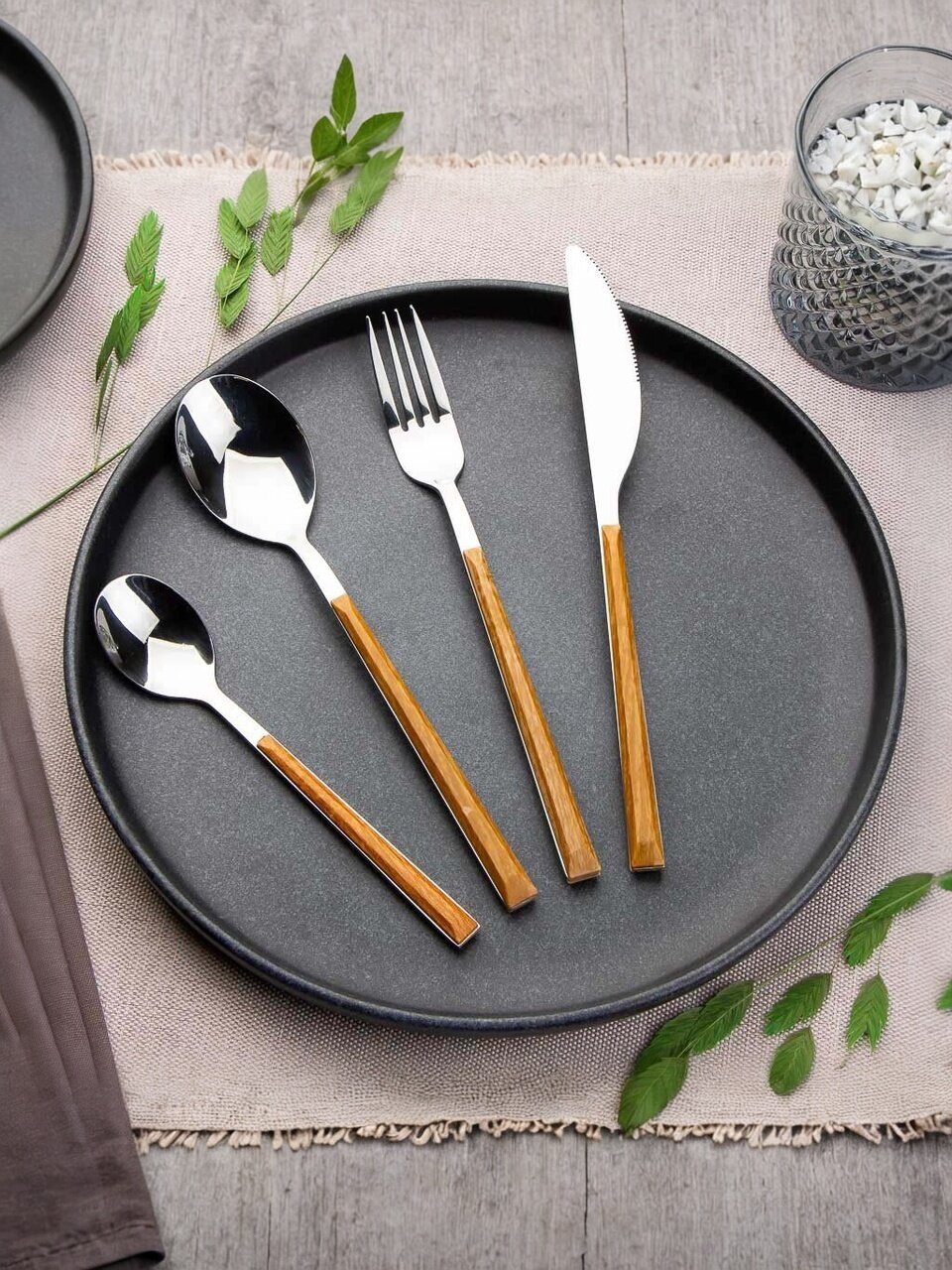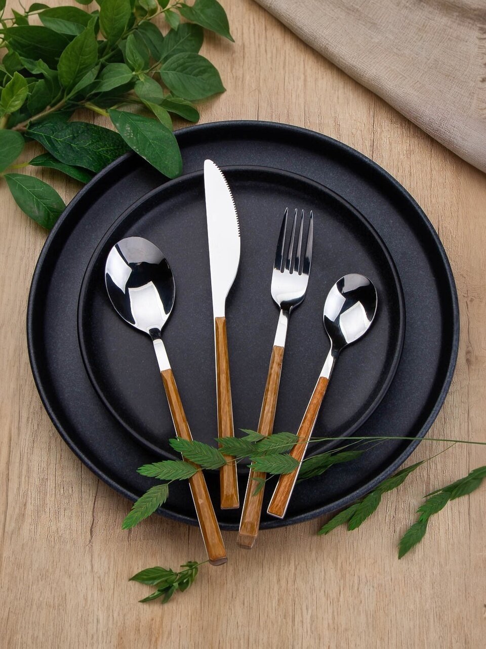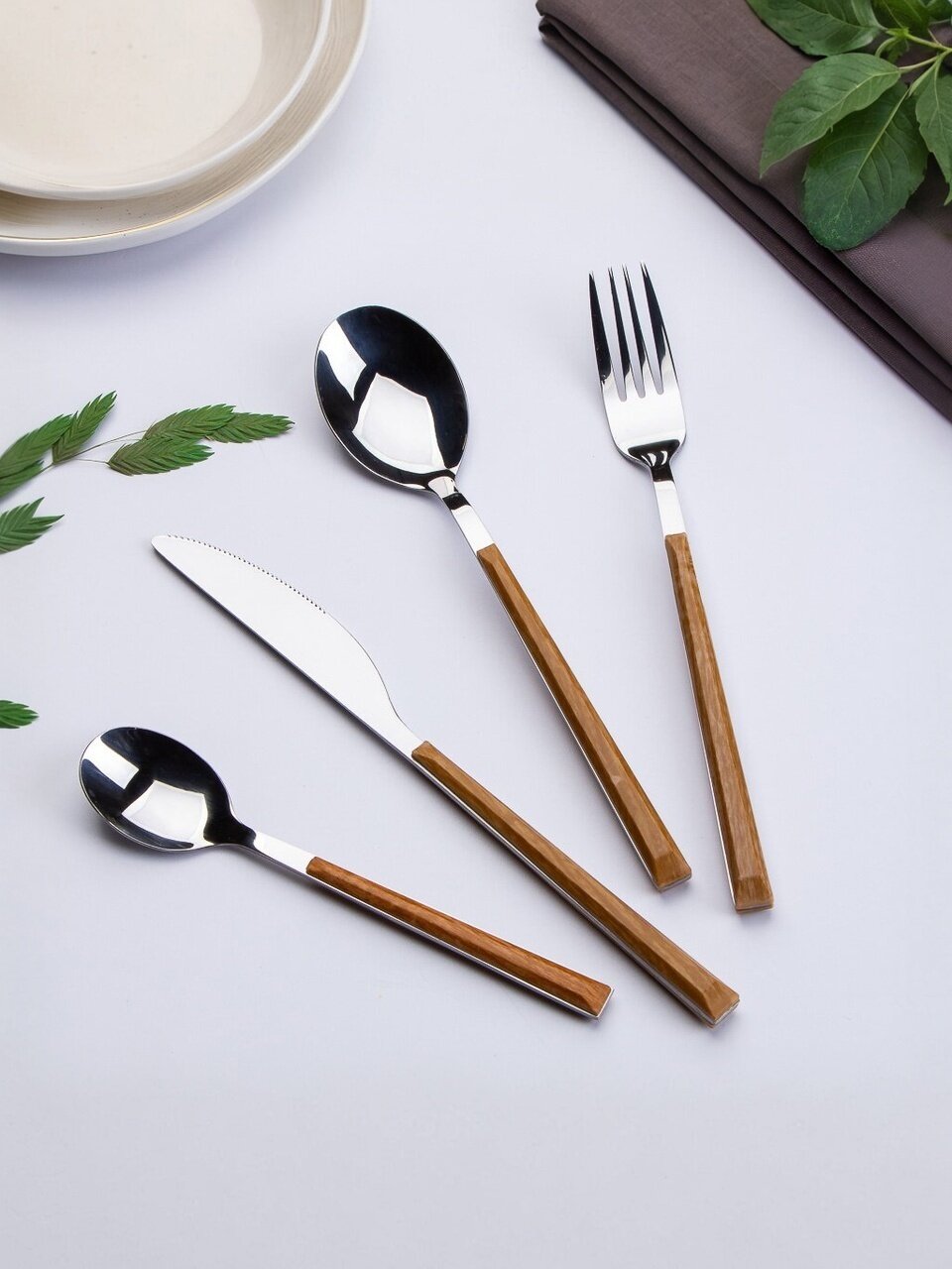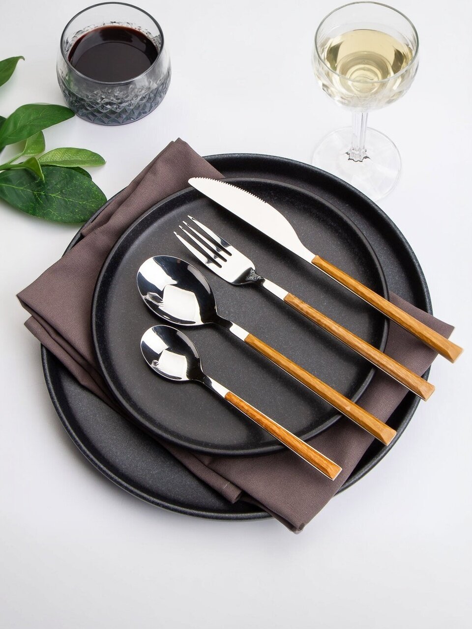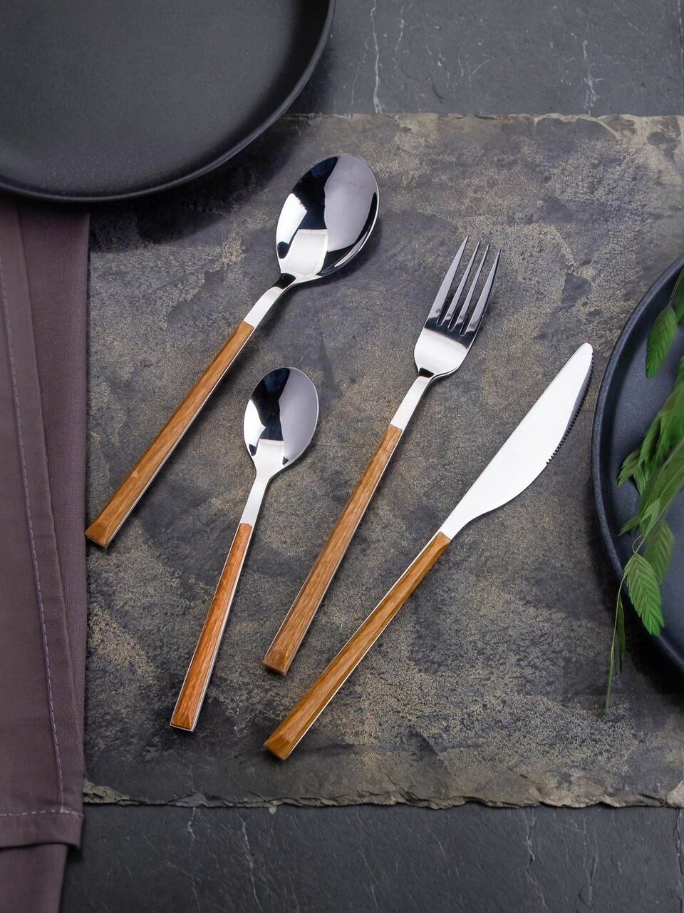 Набор столовых приборов 24 предмета: стильный коричневый глянец для 6 персон — практичное решение для дома, дачи и подарка