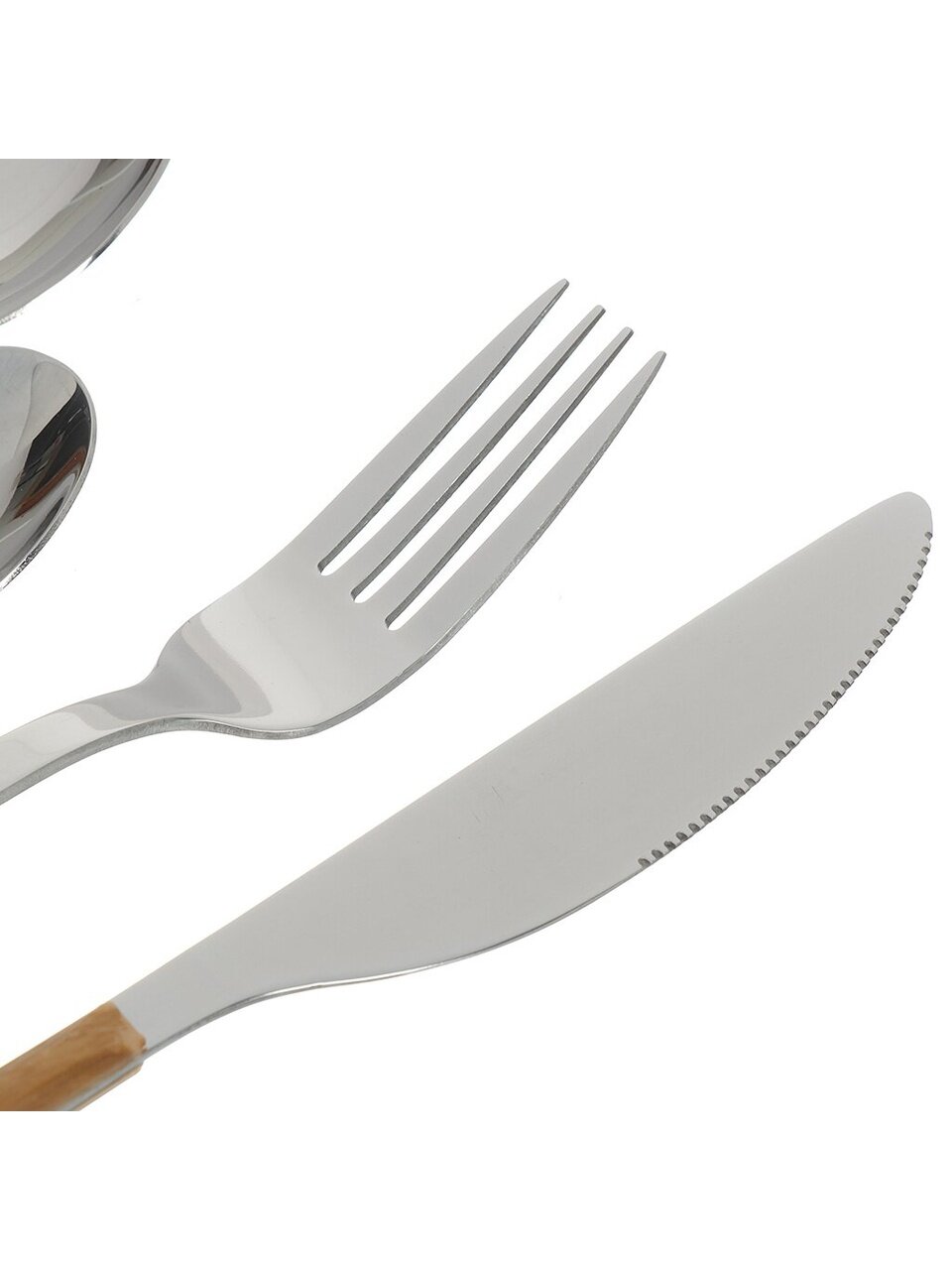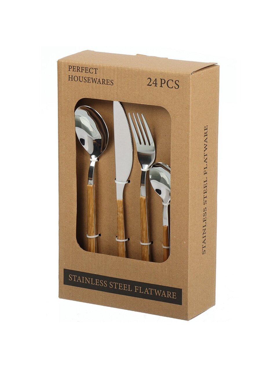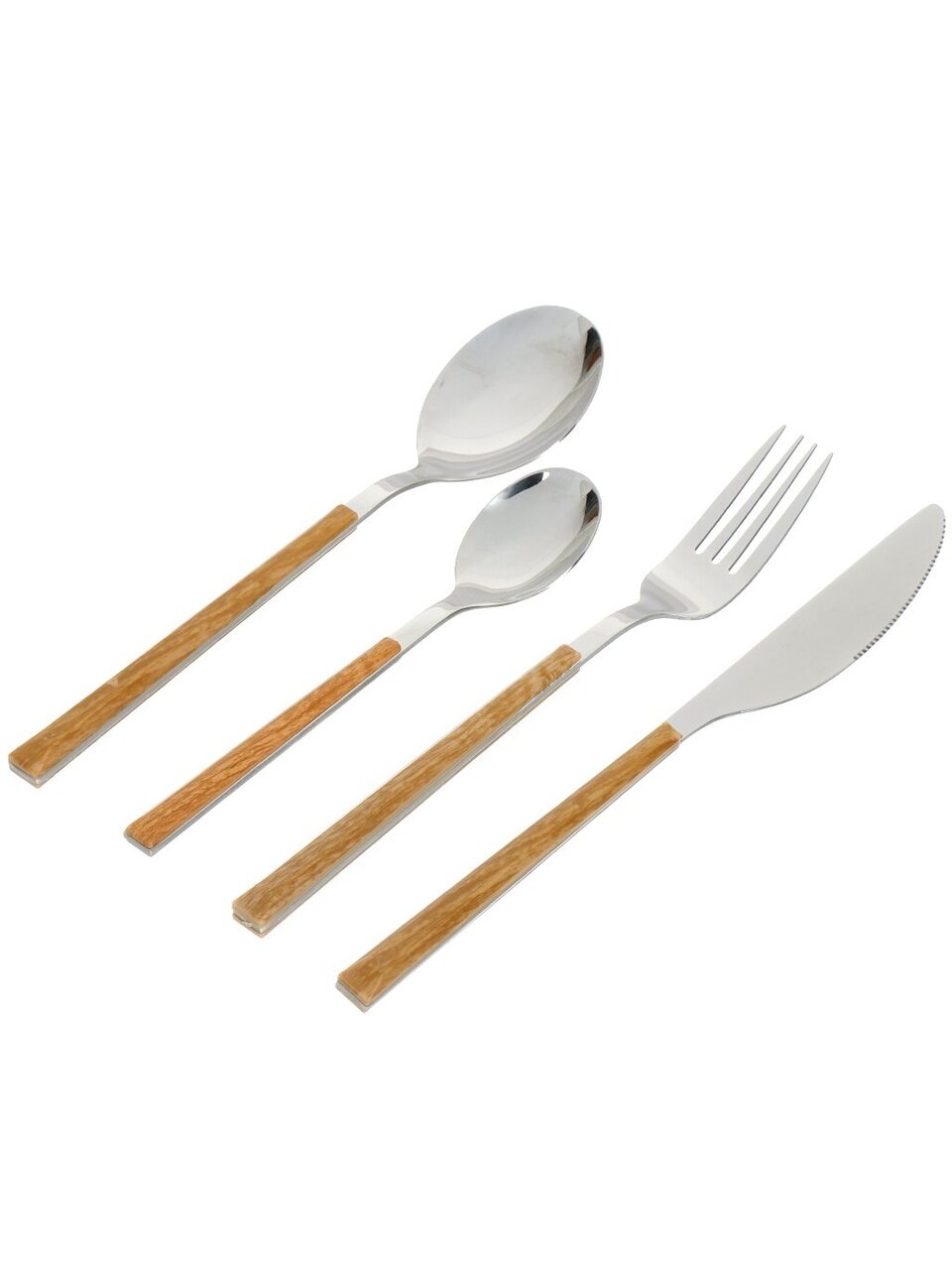 В комплекте 24 предмета для 6 персон: ложки, вилки, ножи и чайные ложки удобного размера.