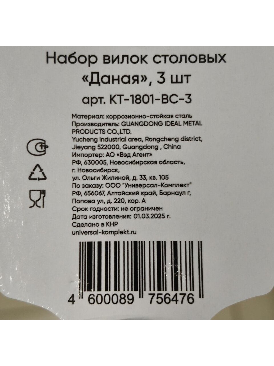 Вы можете приобрести «Вилка нержавеющая сталь, 3 предмета, столовая, Катунь, Даная, КТ-1801-ВС-3, 1,8 мм на подвесе» и другие товары в нашем интернет-магазине в Таганроге по низким ценам и с бесплатным самовывозом.