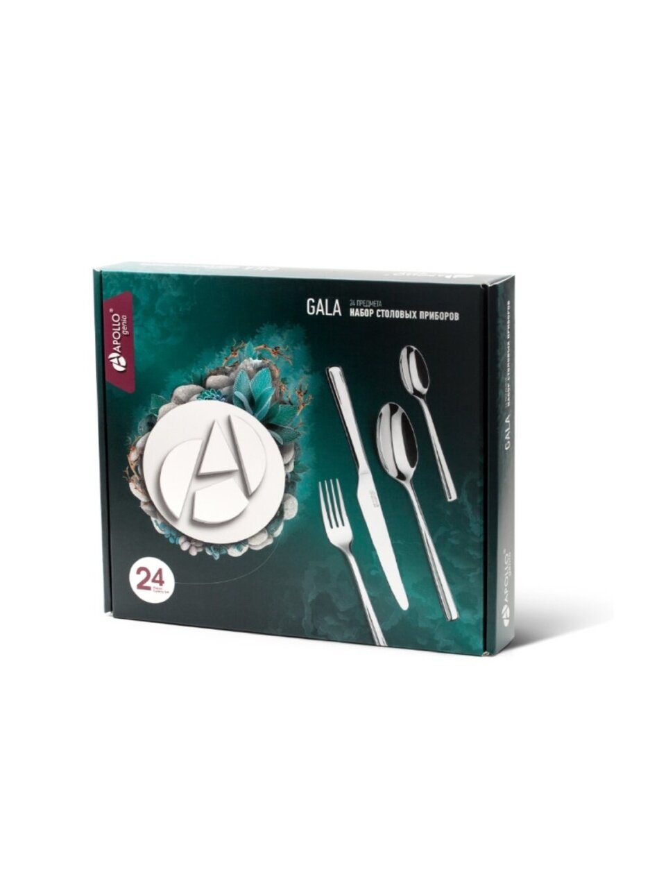 Набор столовых приборов Apollo Gala 24 предмета — стильный подарок в серебристом цвете для сервировки на 6 персон, идеален для дома, дачи и торжеств.