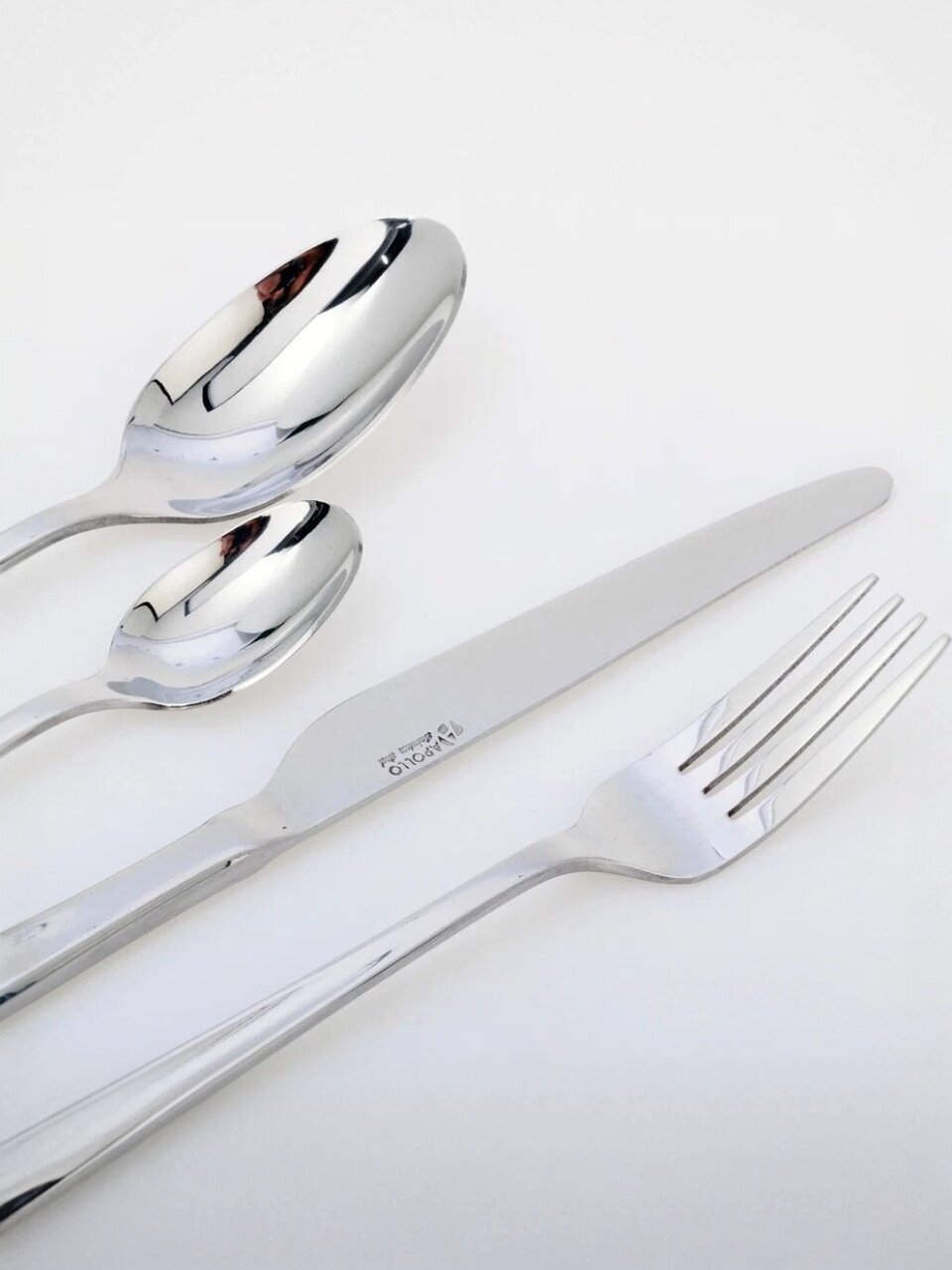 Набор столовых приборов Apollo Gala GAL-24 — выбор для тех, кто ищет, какой столовый набор купить недорого для дома или подарка. Серебристый цвет, современный стиль и металлические ручки делают этот комплект актуальным для любой сервировки. В отличие от аналогов с пластиковыми элементами, нержавеющая сталь не теряет внешний вид и не требует сложного ухода. Часто спрашивают, подходит ли набор для мытья в посудомоечной машине — этот комплект рекомендуется мыть вручную, чтобы сохранить блеск и форму изделий.