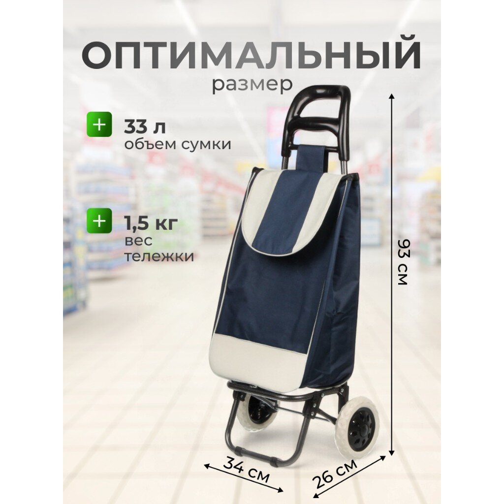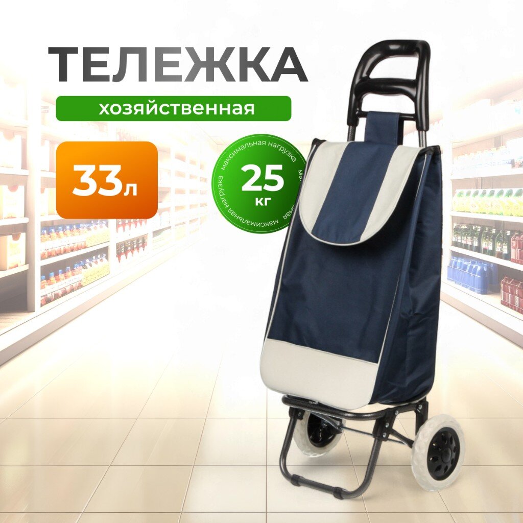 Тележка хозяйственная полиэстер, пластик, металл, 34 л, синяя, с сумкой, складная, A150011