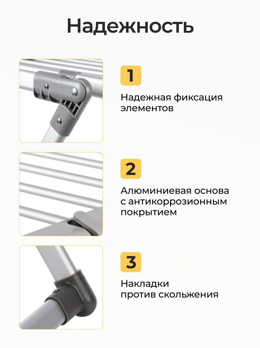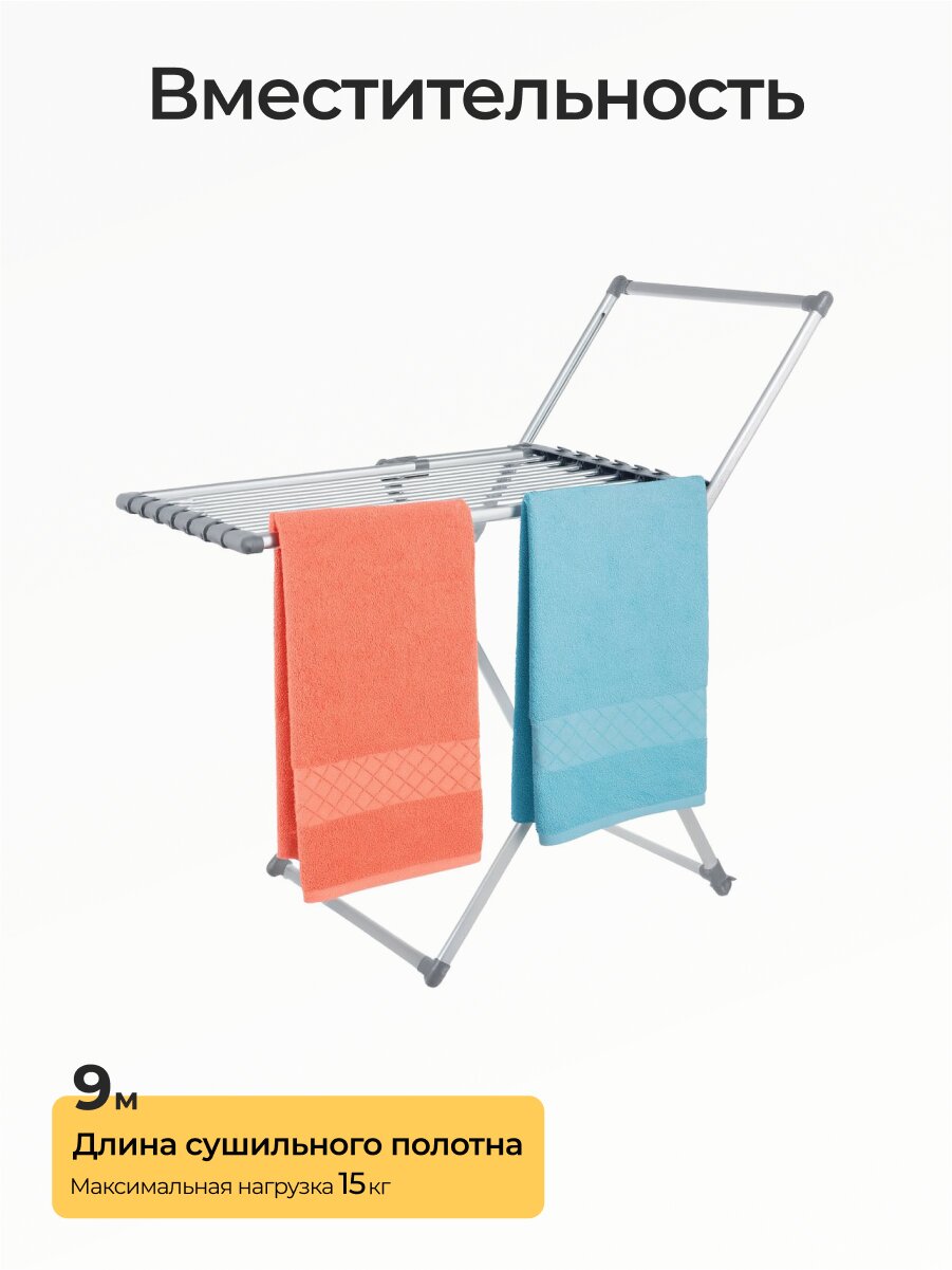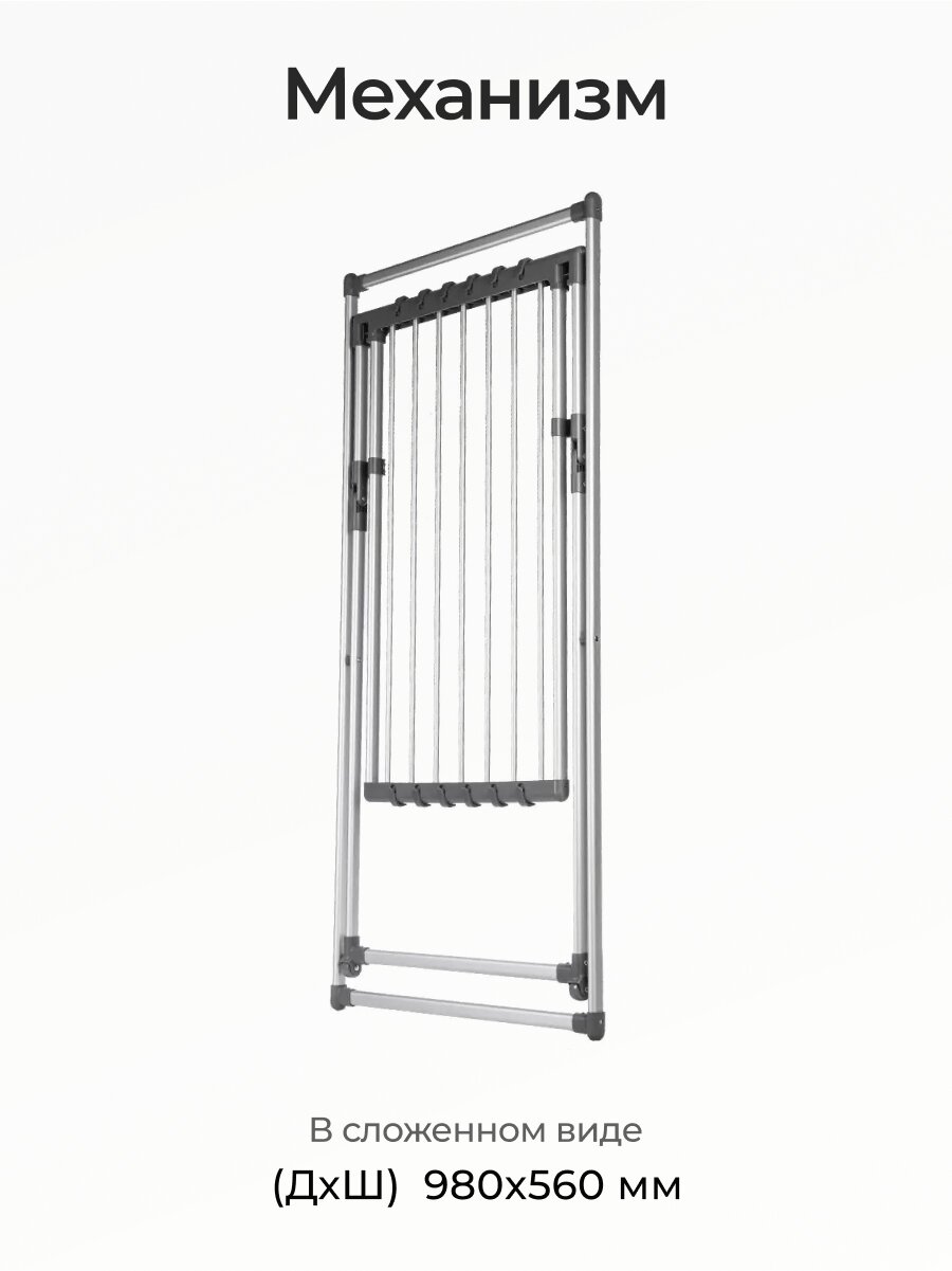 Вы можете приобрести «Сушилка для белья напольная, полотно 9 м, 116x63.5x108.5 см, складная, 15 кг, серая, 126208C» и другие товары в нашем интернет-магазине в Смоленске по низким ценам и с бесплатным самовывозом.