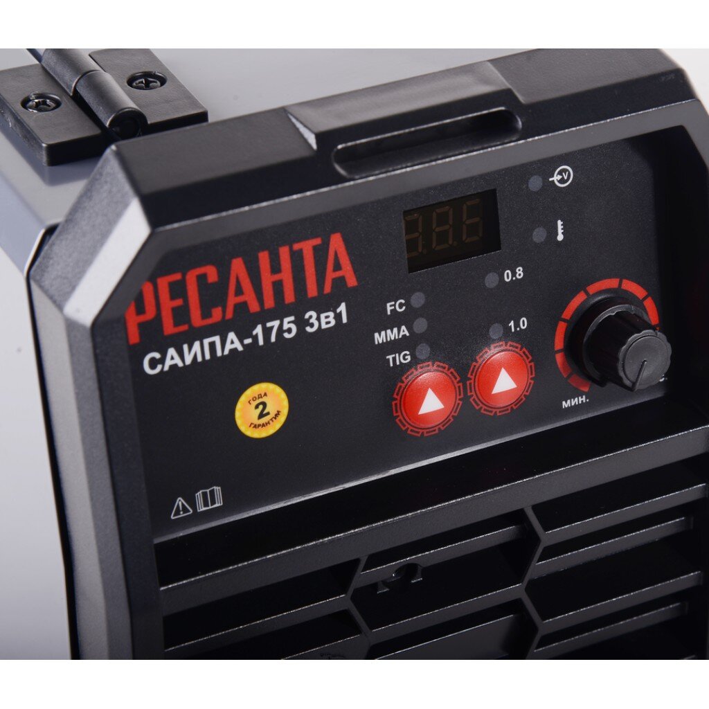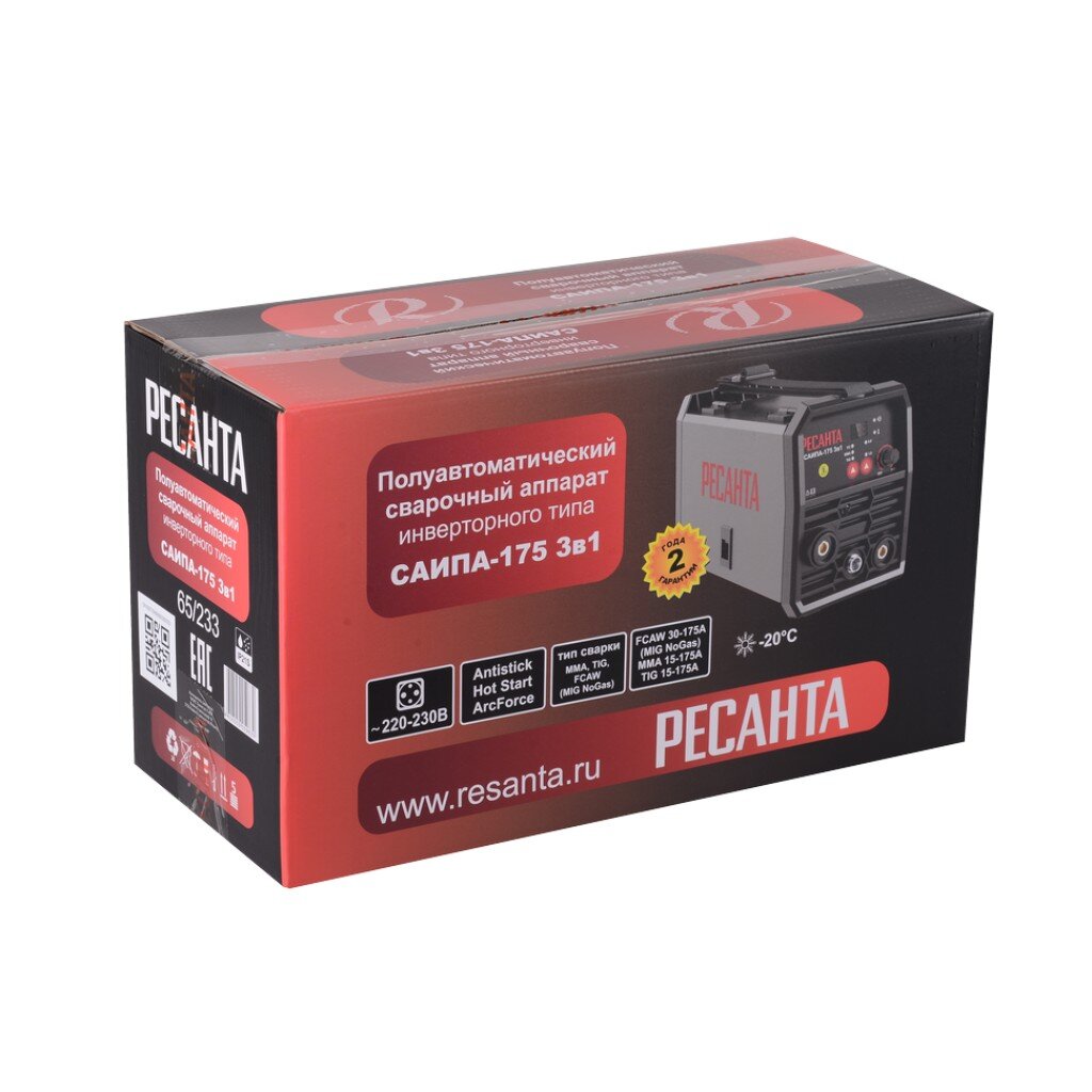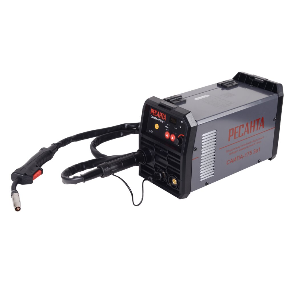 Сварочный аппарат инверторный, Ресанта, САИПА-175, 5.5 кВт, 175 А, проволока, полуавтоматическая сварка, 3 в 1