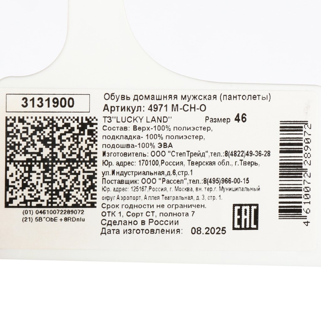 Вы можете приобрести «Тапки для мужчин, полиэстер, ЭВА, в ассортименте, р. 46, открытые, Lucky Land, 4971 M-CH-O» и другие товары в нашем интернет-магазине в Серпухове по низким ценам и с бесплатным самовывозом.