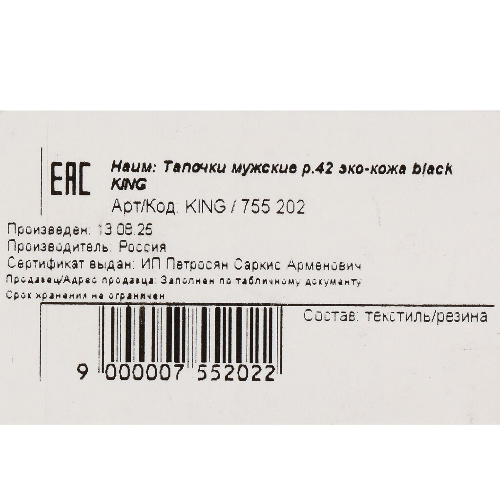 Вы можете приобрести «Тапки для мужчин, эко-кожа, черные, р. 42, открытые, King» и другие товары в нашем интернет-магазине в Обнинске по низким ценам и с бесплатным самовывозом.