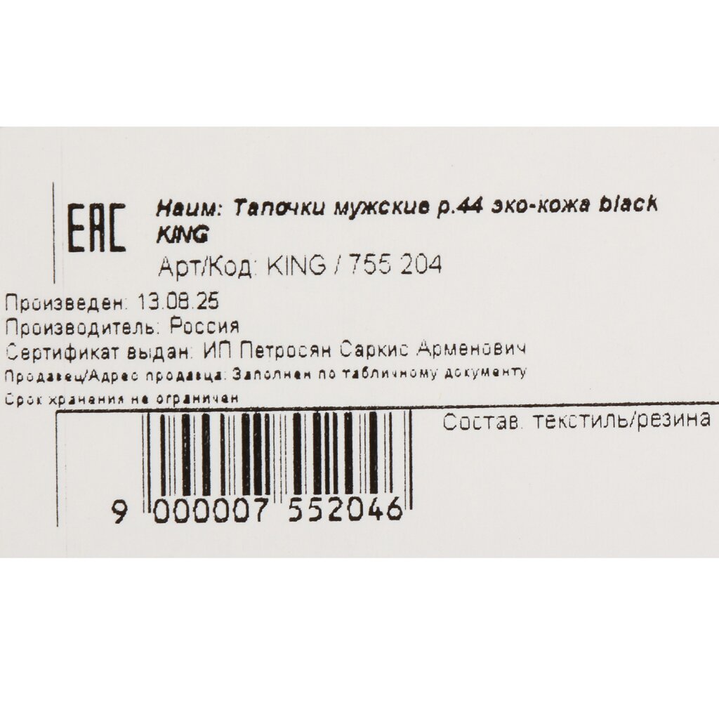 Вы можете приобрести «Тапки для мужчин, эко-кожа, черные, р. 44, открытые, King» и другие товары в нашем интернет-магазине в Обнинске по низким ценам и с бесплатным самовывозом.