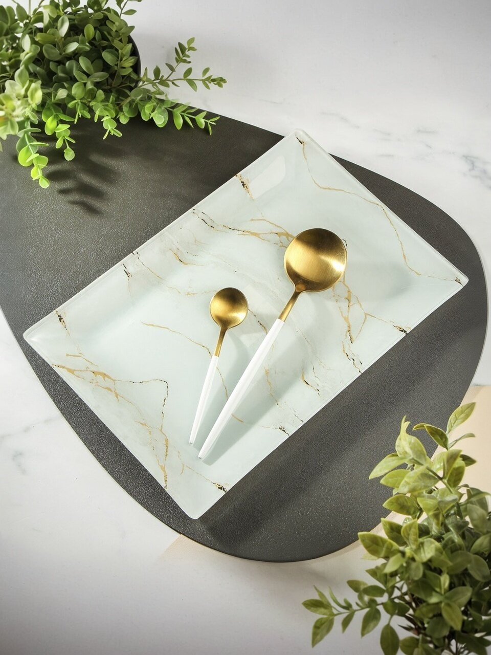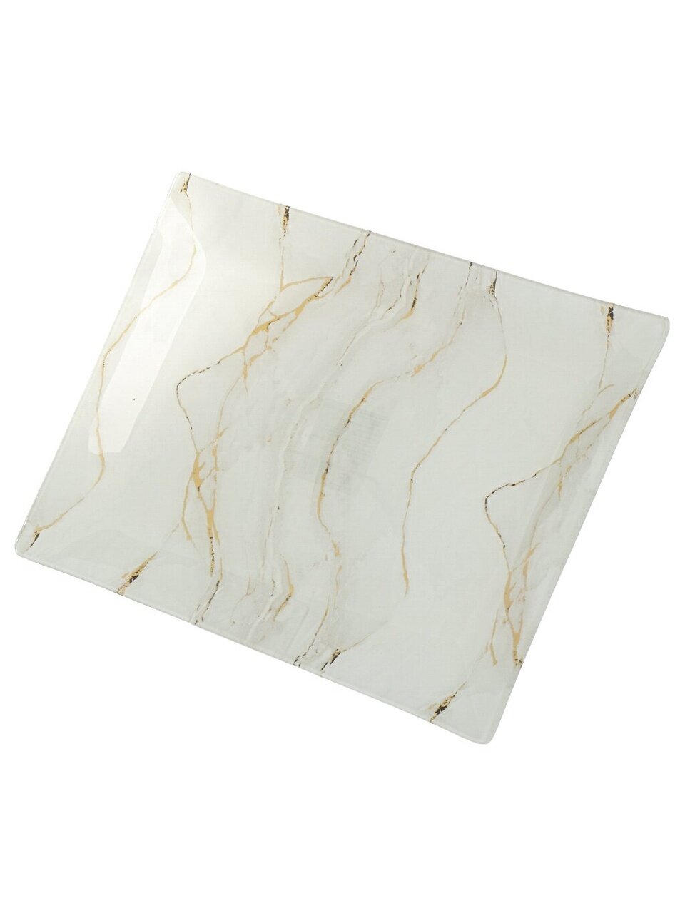Десертная тарелка Daniks Флюид 20х30 см — стильное стекло под мрамор для сервировки и подарка. Удобна для дома, дачи, кафе. Можно мыть в посудомойке.
