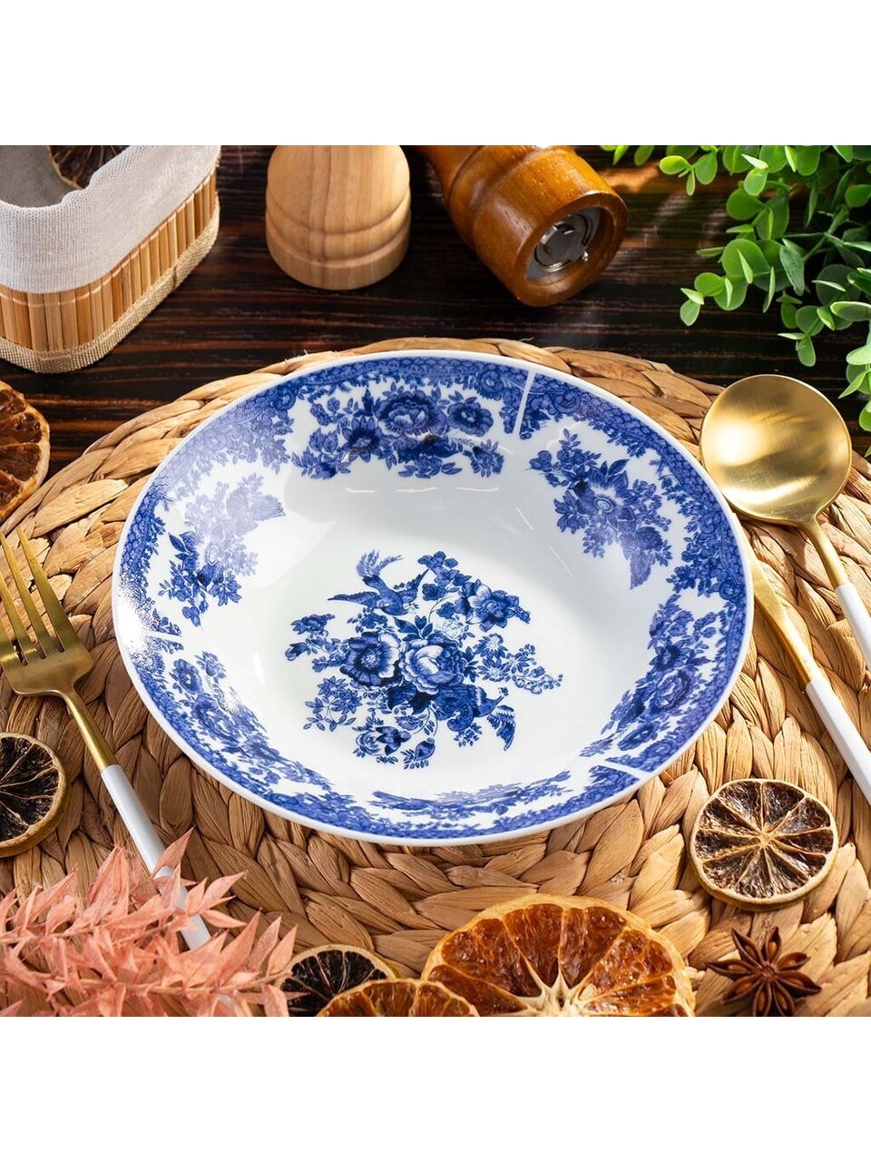 Многие спрашивают: «Чем отличается керамическая тарелка от фарфоровой или стеклянной?». Керамика лучше сохраняет тепло, не царапается приборами и надолго сохраняет яркость рисунка. Подходит ли эта тарелка для микроволновки? Да, она полностью безопасна для СВЧ-печей и не теряет своих свойств при частом использовании. Если вы ищете, какую суповую тарелку выбрать для дачи или подарка, обратите внимание на коллекцию Жар-Птица — узнаваемый синий узор и универсальная форма впишутся в любой интерьер.