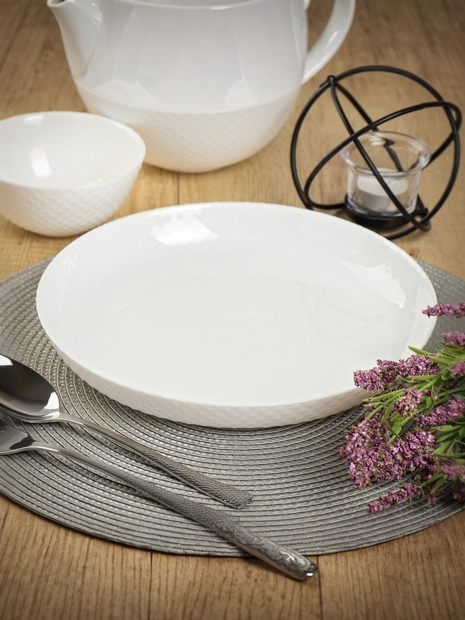 Диаметр — 19 см, форма — круглая, цвет — белый, без рисунка. Идеальна для ежедневного и праздничного использования.