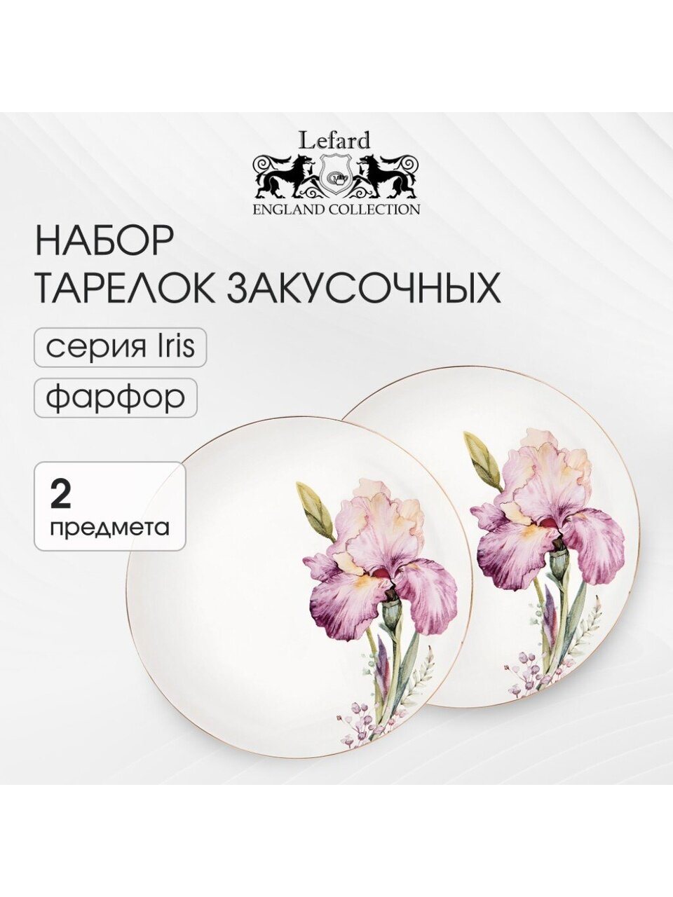 Премиум-набор из 2 фарфоровых тарелок Lefard Irises 23 см: изысканная сервировка, прочность и акцент на стиль для вашего дома или подарка.