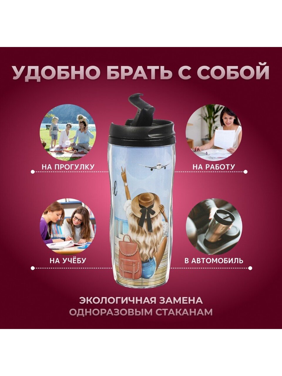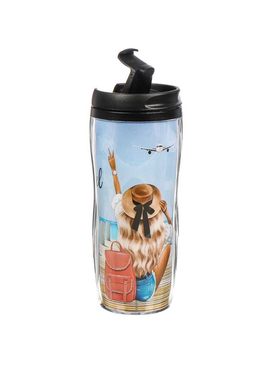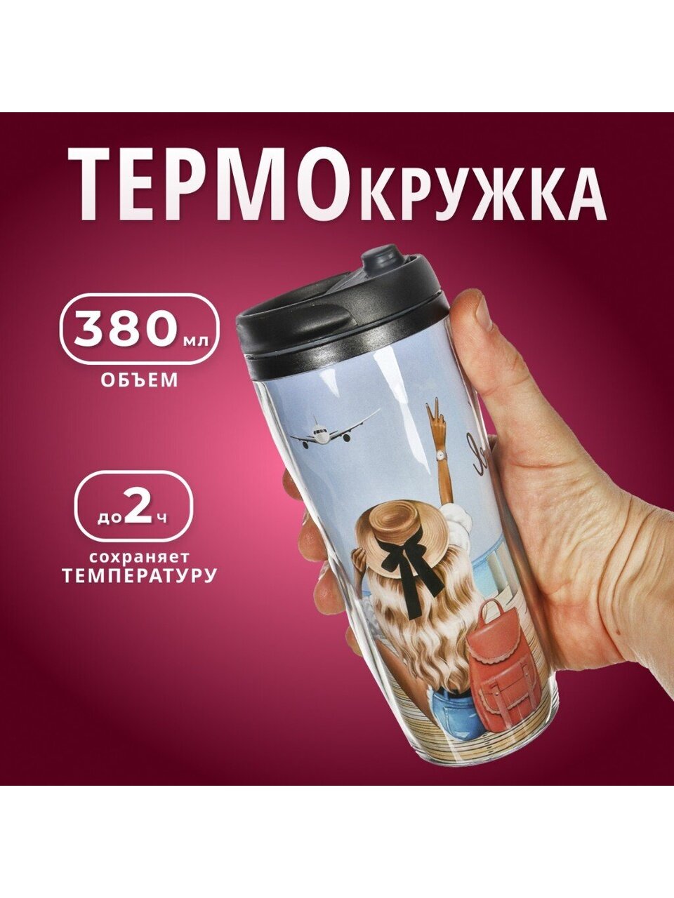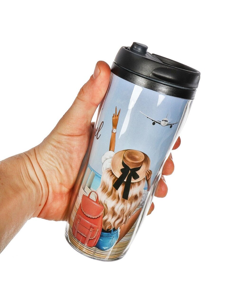 - Яркий дизайн и компактность — эксклюзивная термокружка с рисунком «Девушка на пирсе», выделяет вас среди коллег и друзей.