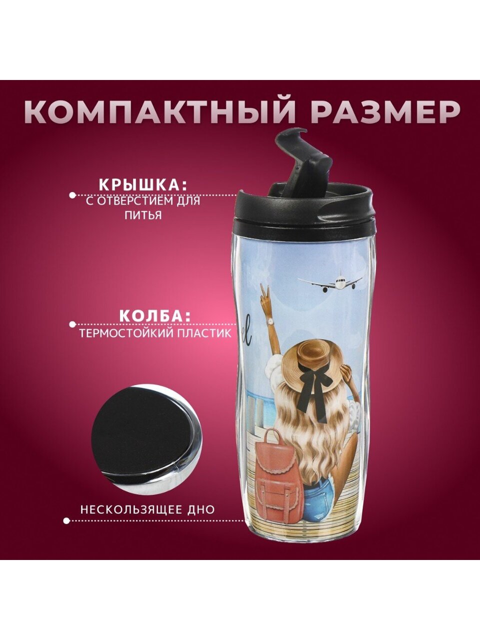 Термокружка Daniks «Девушка на пирсе» — это идеальный выбор для тех, кто ищет недорогую термокружку для напитков на каждый день. Благодаря прочному пластиковому корпусу и лёгкому весу, кружка не занимает много места и легко помещается в рюкзак или автомобильный подстаканник. Широкая горловина обеспечивает удобство питья, а крышка с отверстием защищает от случайных проливов. Если вы ищете, какую термокружку выбрать для офиса, прогулок или путешествий — обратите внимание на это решение.