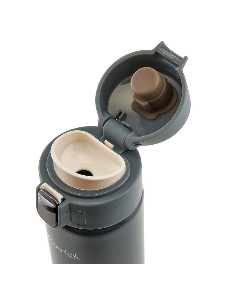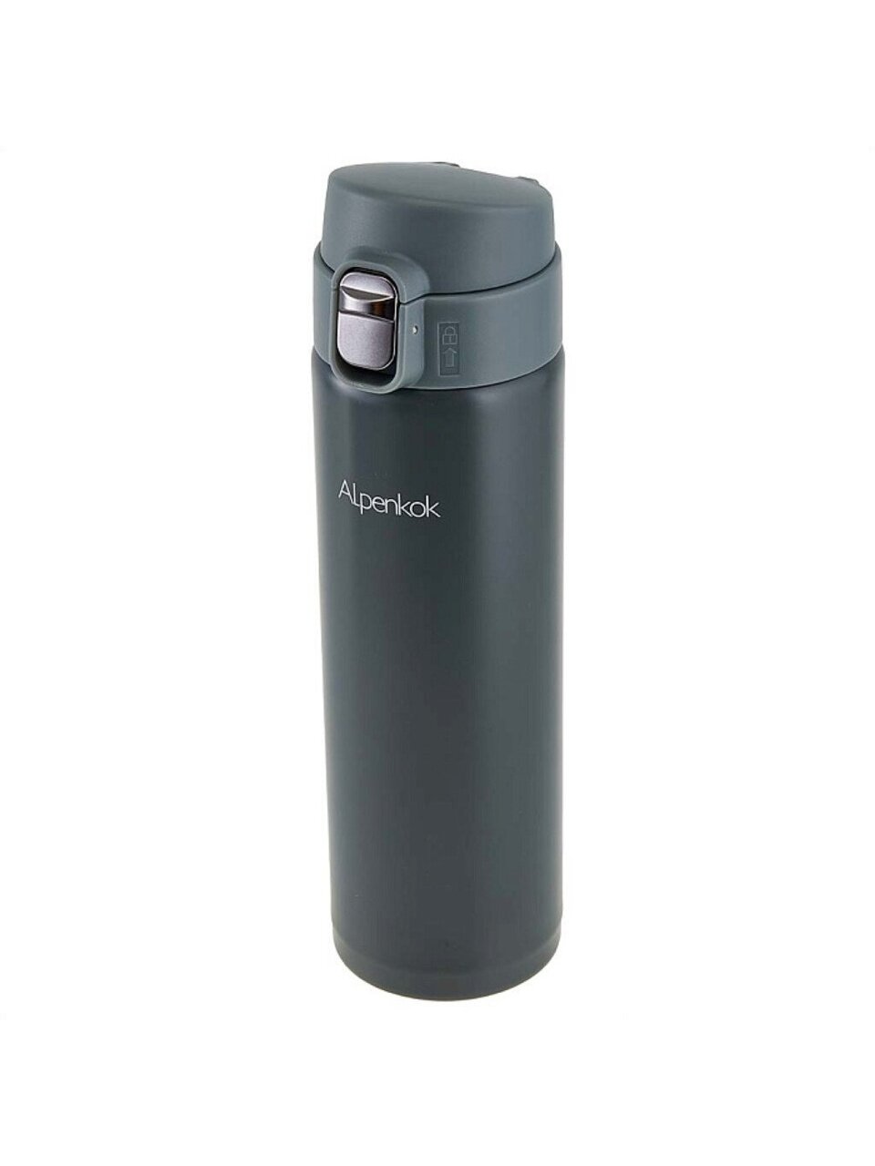 Термокружка Alpenkok 0.48 л из нержавеющей стали: держит тепло и холод до 6 часов, удобна в городе и в дороге, стильный серый дизайн для активных.