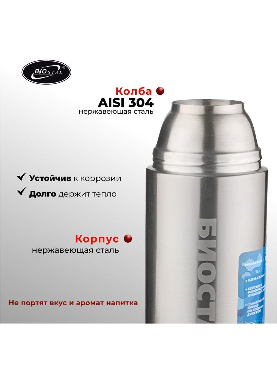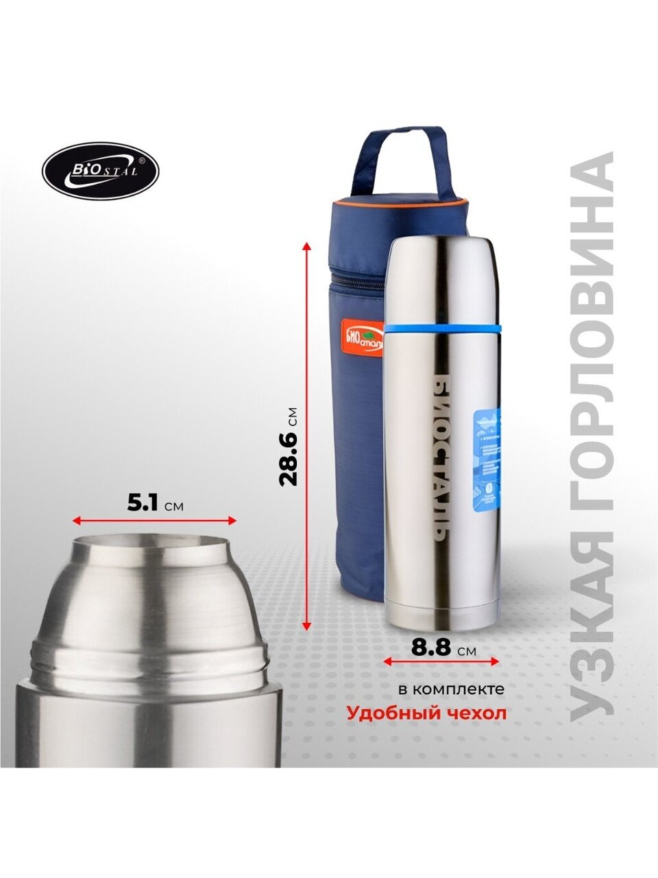 Термос Biostal Авто 1 л: держит тепло до 32 часов, не протекает, идеален для поездок и дома — удобство и стиль по доступной цене.