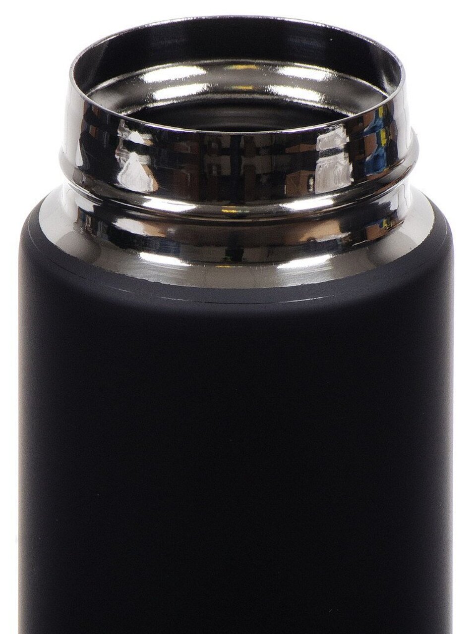 Объем — 350 мл, корпус и колба выполнены из долговечной нержавеющей стали, цвет — черный, тип горловины — узкий, крышка — с защелкой.