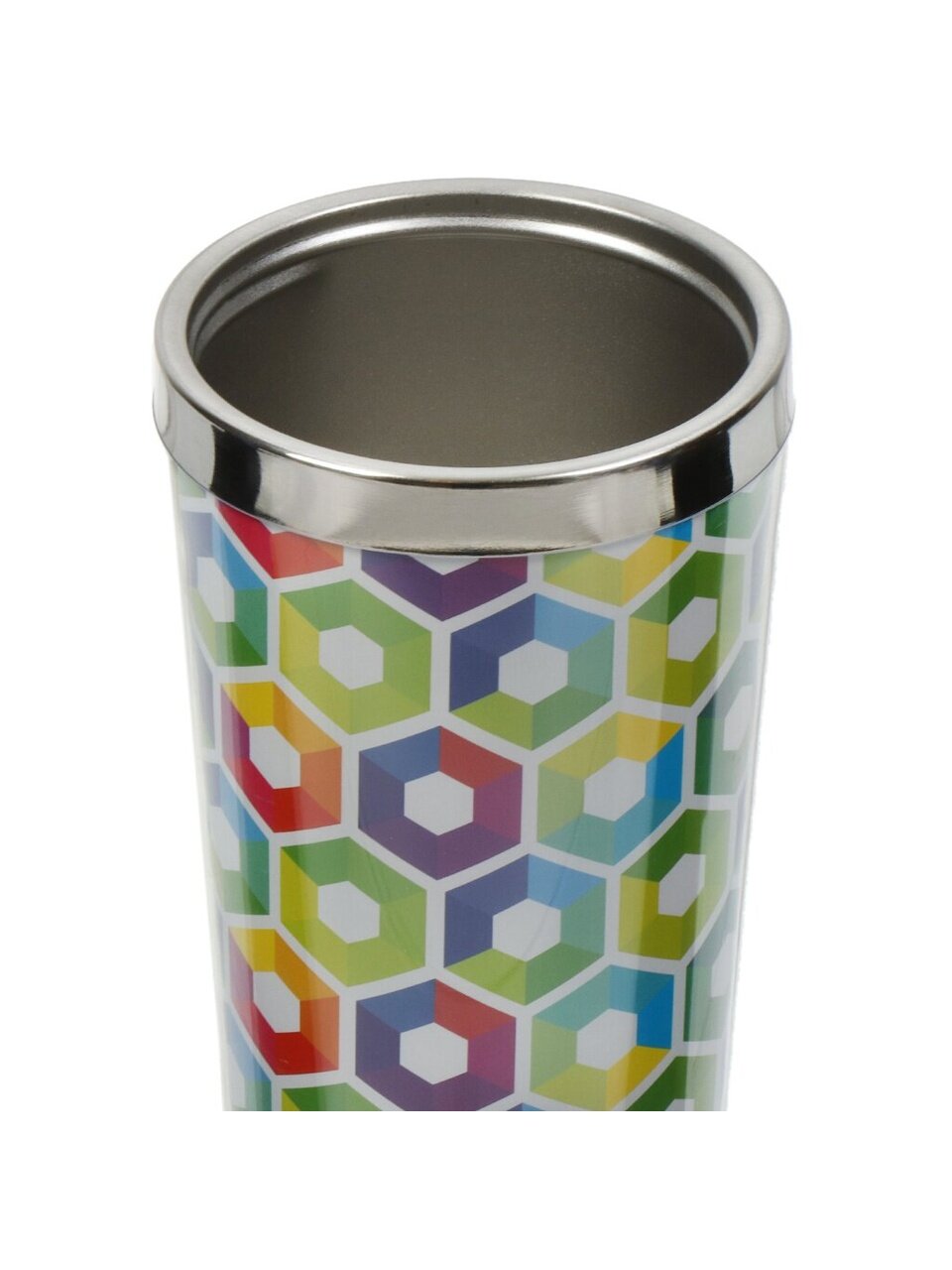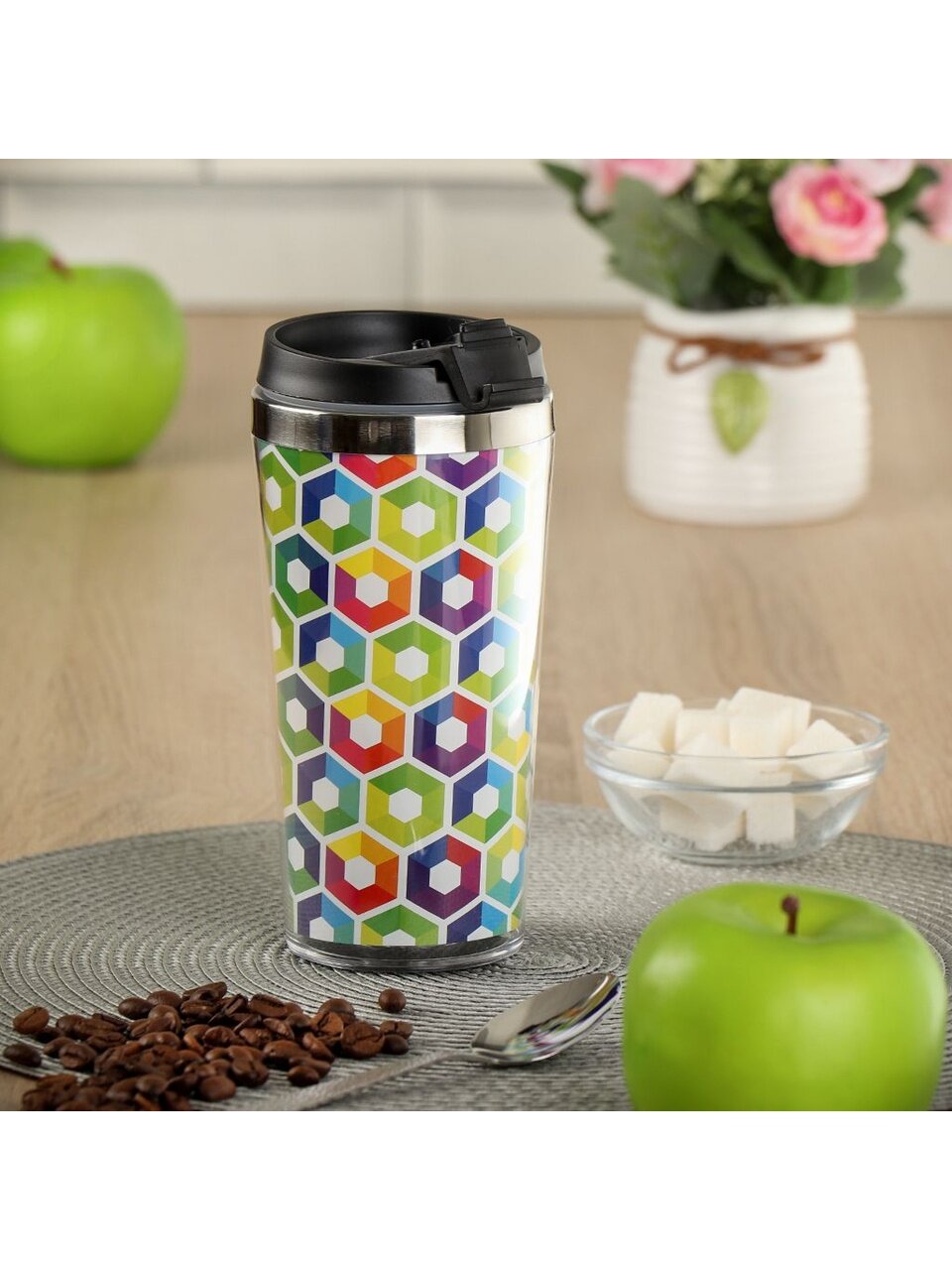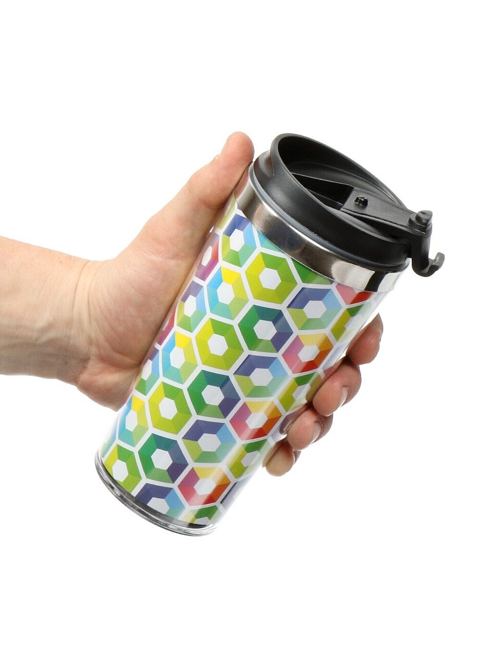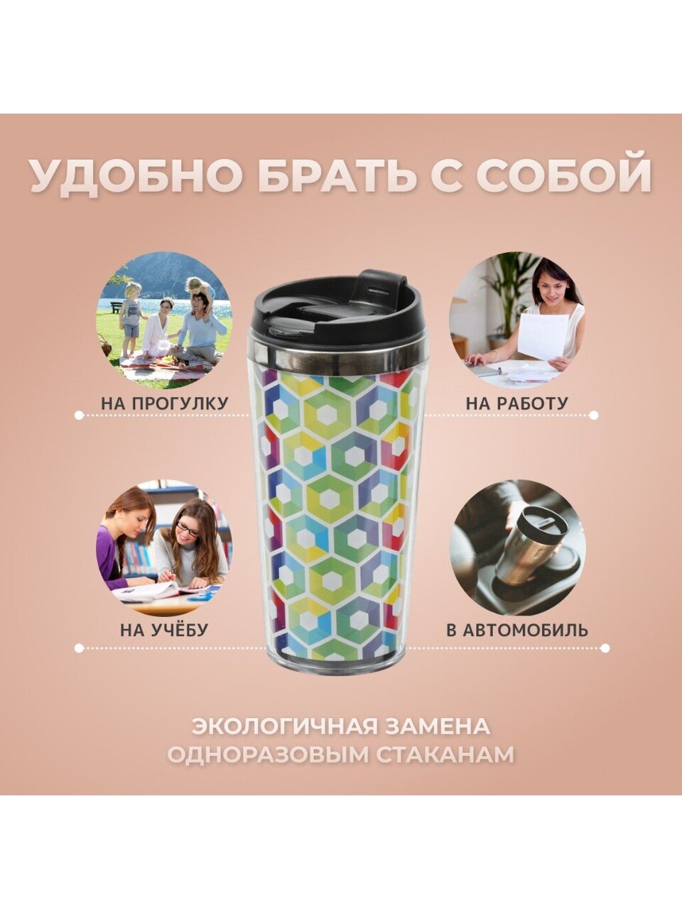 - Стильная термокружка с рисунком и широкой горловиной — удобно наливать и мыть.