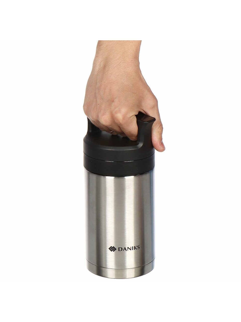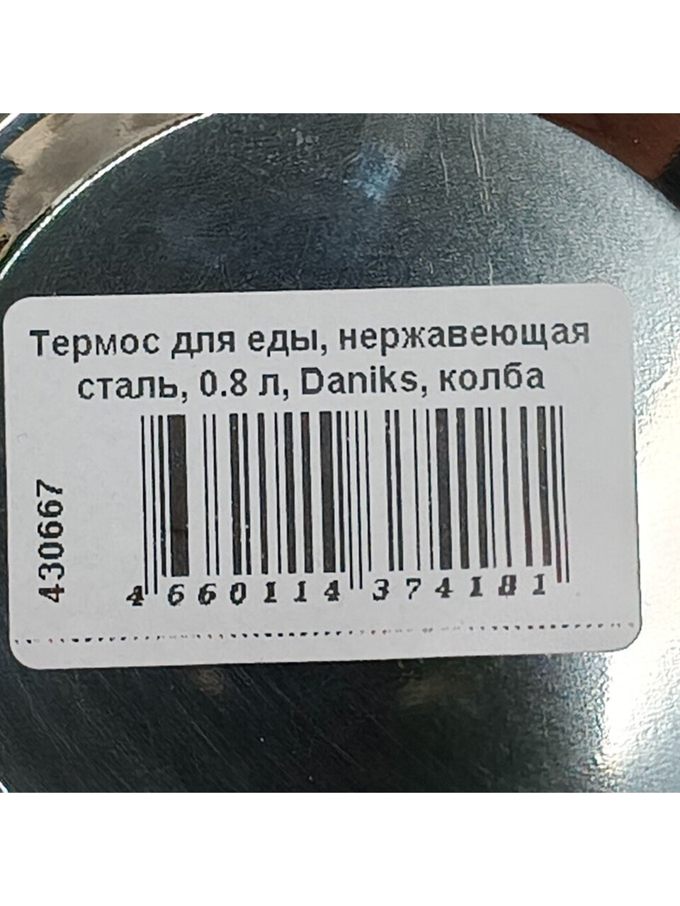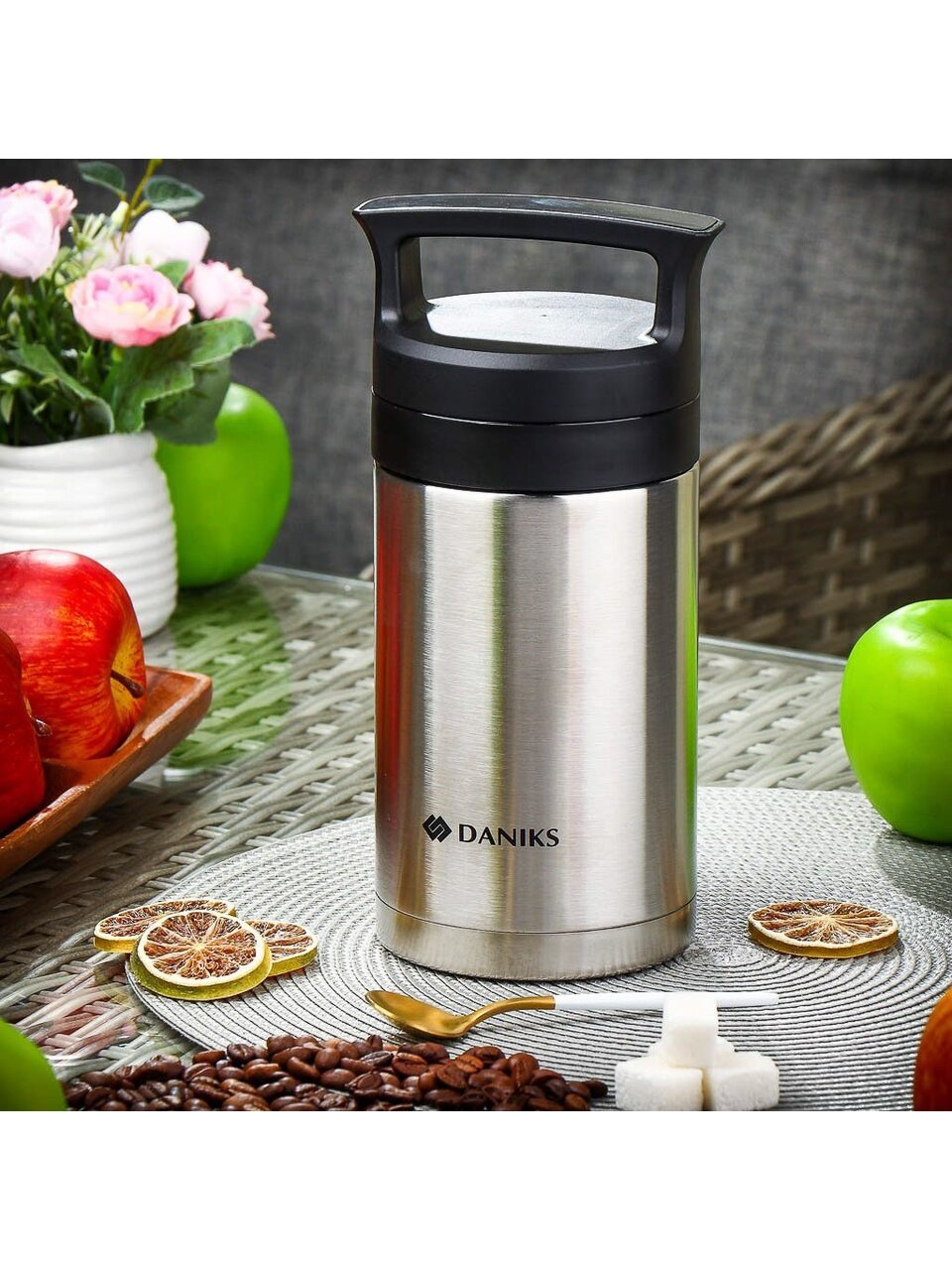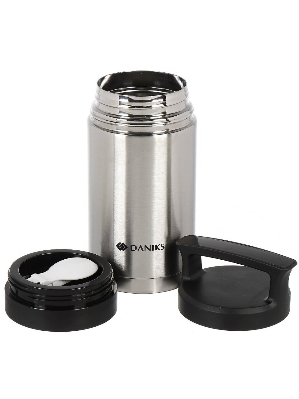 Термос Daniks 0.8 л сохраняет температуру горячих и холодных блюд до 24 часов за счет двойных стенок из нержавеющей стали и герметичной крышки.