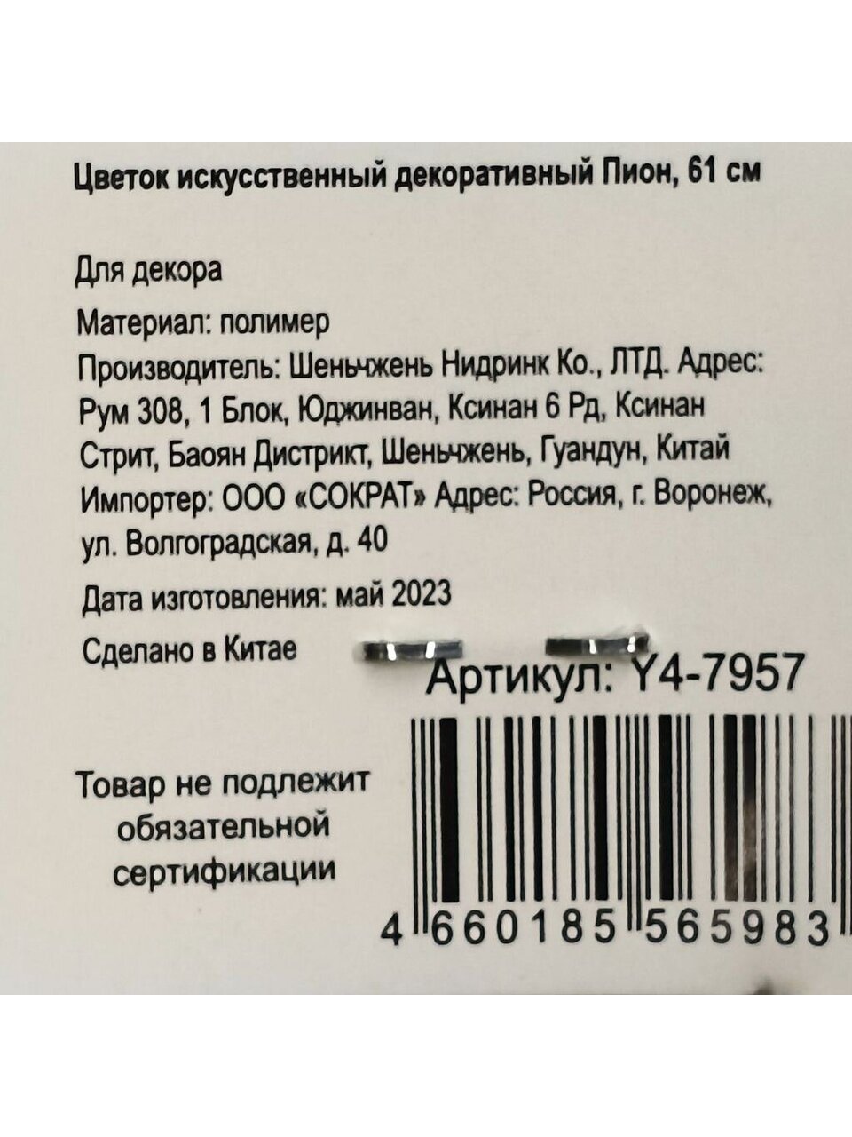 Вы можете приобрести «Цветок искусственный декоративный Пион, 61 см, фуксия, Y4-7957» и другие товары в нашем интернет-магазине в Серпухове по низким ценам и с бесплатным самовывозом.