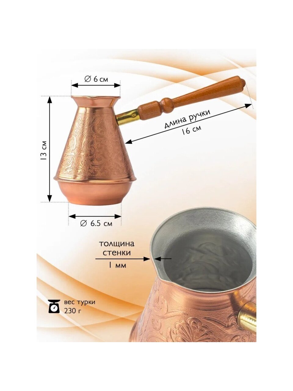 - Внешняя поверхность турки имеет натуральный цвет меди.