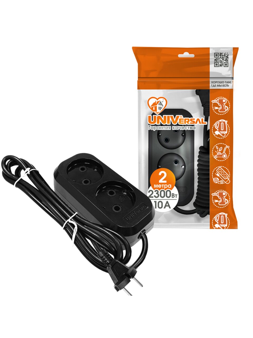 Вы можете приобрести «Удлинитель бытовой 2 гнезда, 2 м, ПВС, 2х0.75 мм², без заземления, черный, UNIVersal, Премиум, Е-202, 2103» и другие товары в нашем интернет-магазине в Старом Осколе по низким ценам и с бесплатным самовывозом.