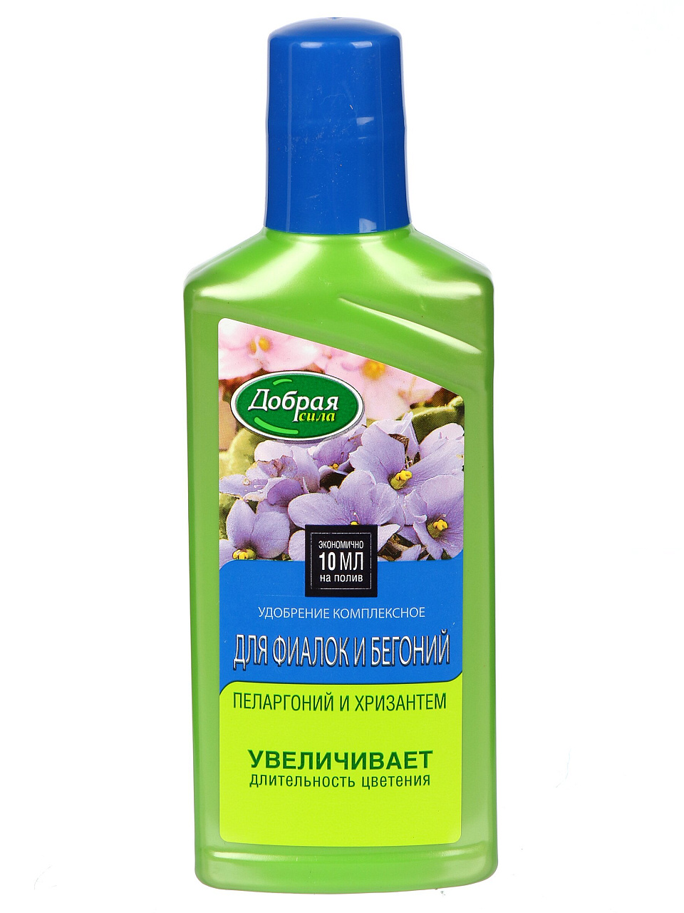 Удобрение Добрая сила для фиалок и бегоний: быстрый рост, яркое цветение и защита растений — 250 мл концентрата для дома и дачи.