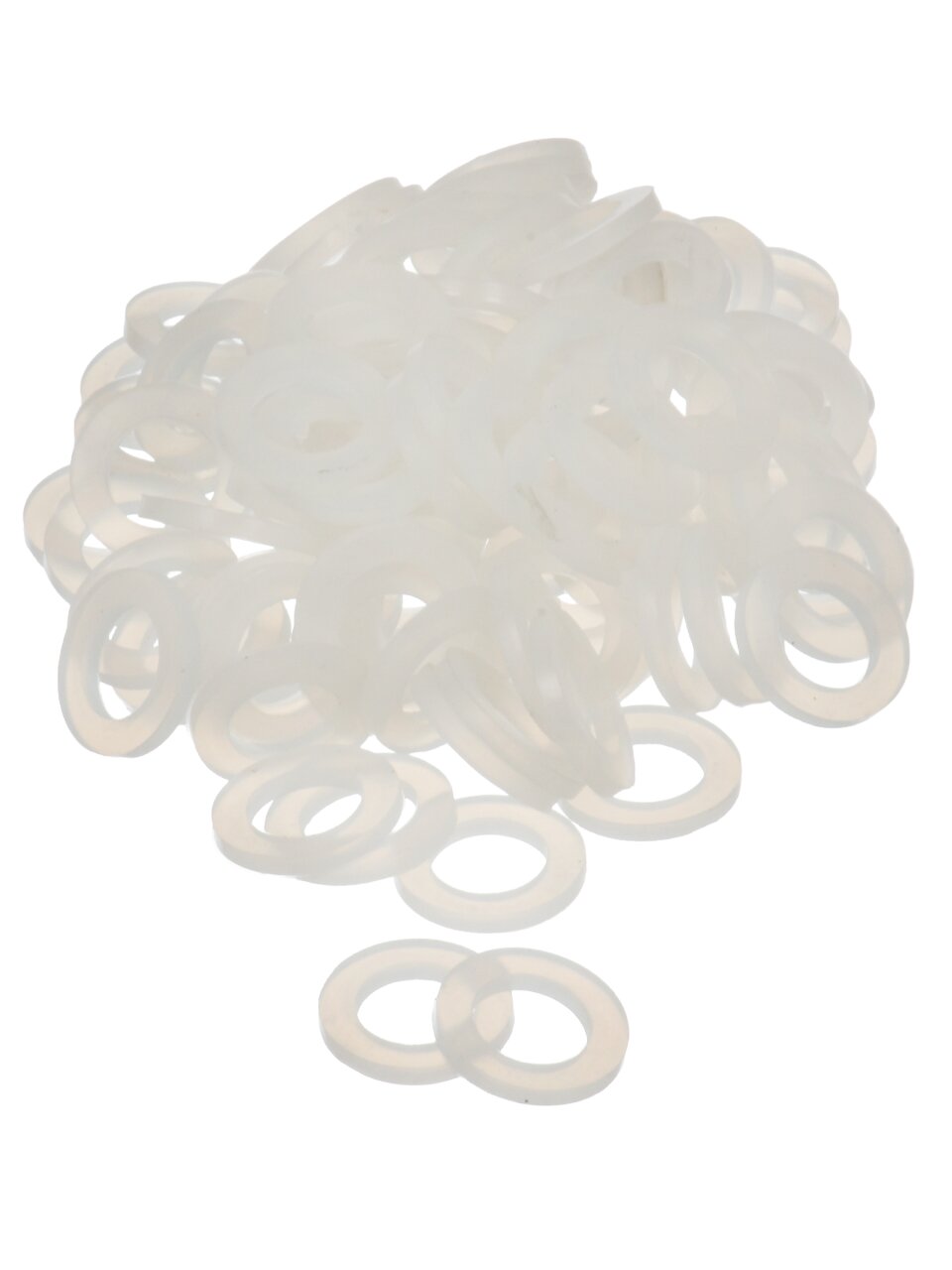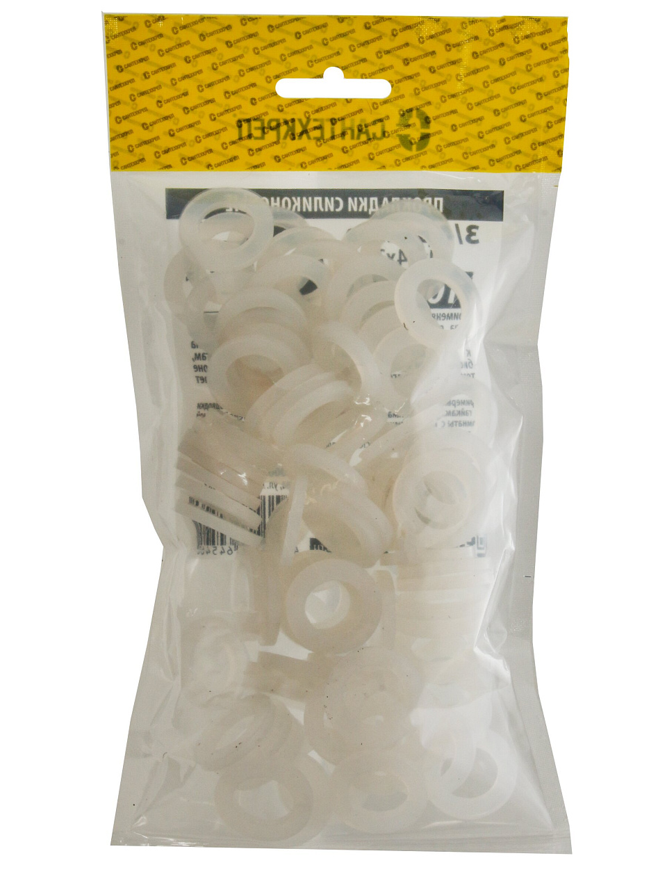 В комплекте 100 силиконовых прокладок, товар произведён и поставляется от российского бренда СантехКреп.