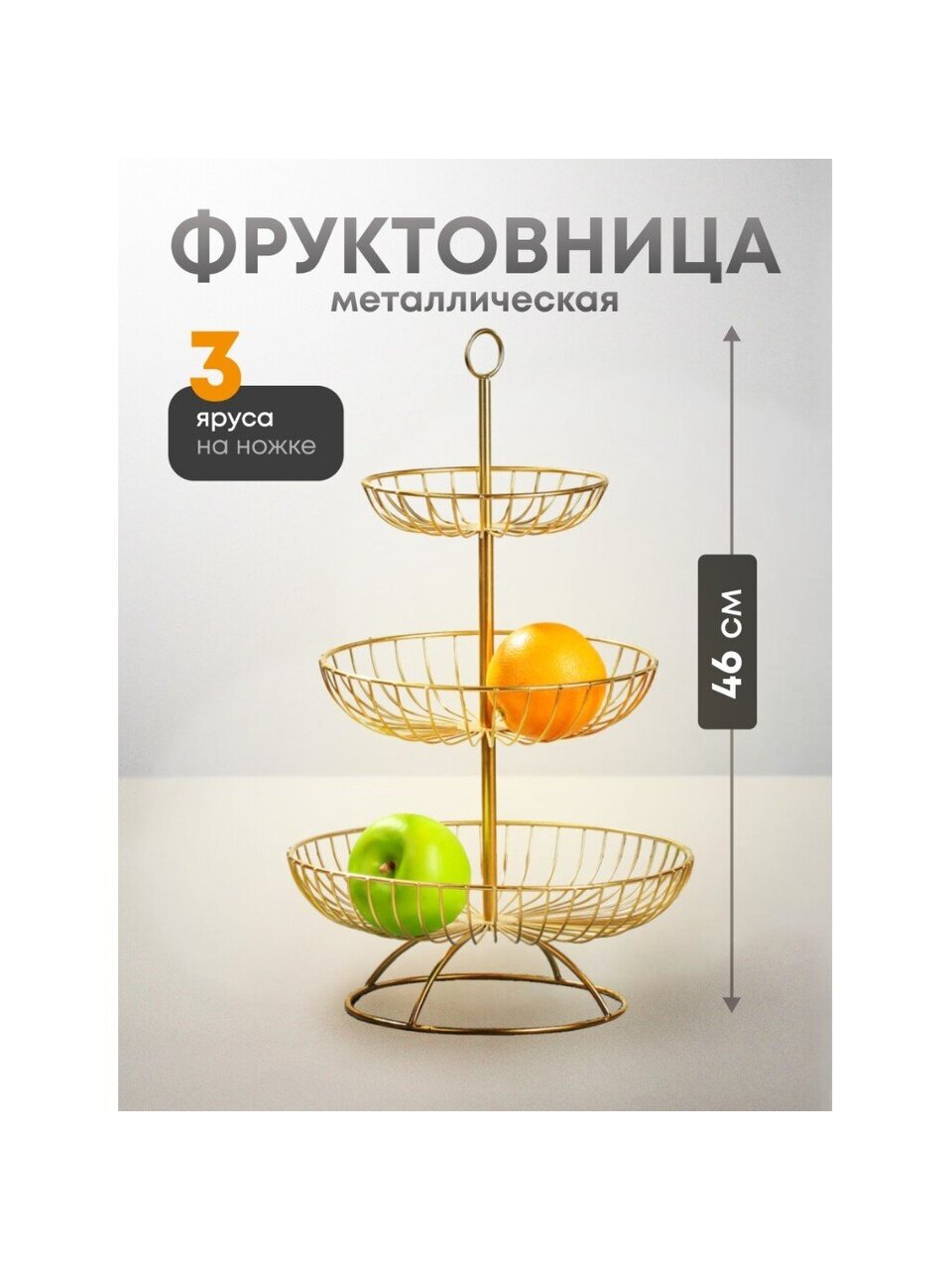 Вы можете приобрести «Ваза для фруктов, 3 яруса, металл, на ножке, 30х30х46 см, Y4-7626, золотая» и другие товары в нашем интернет-магазине в Казани по низким ценам и с бесплатным самовывозом.