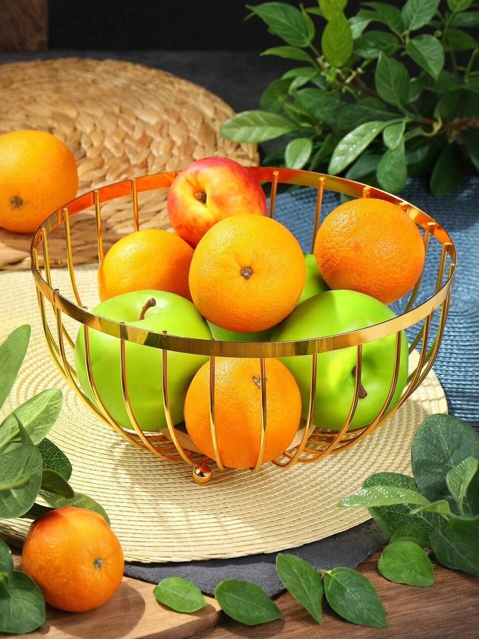 Стильная металлическая корзина для фруктов впишется в любой интерьер Вашего дома и всегда будет радовать Вас и Ваших гостей. Корзина имеет оригинальный геометрический дизайн.